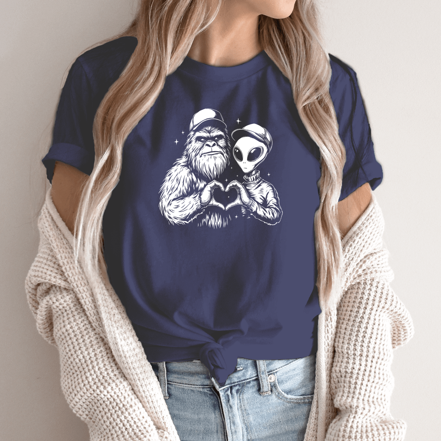 Būkite pirmas aprašęs “Unisex marškinėliai su spauda „Marsietis ir Bigfutas kartu“”