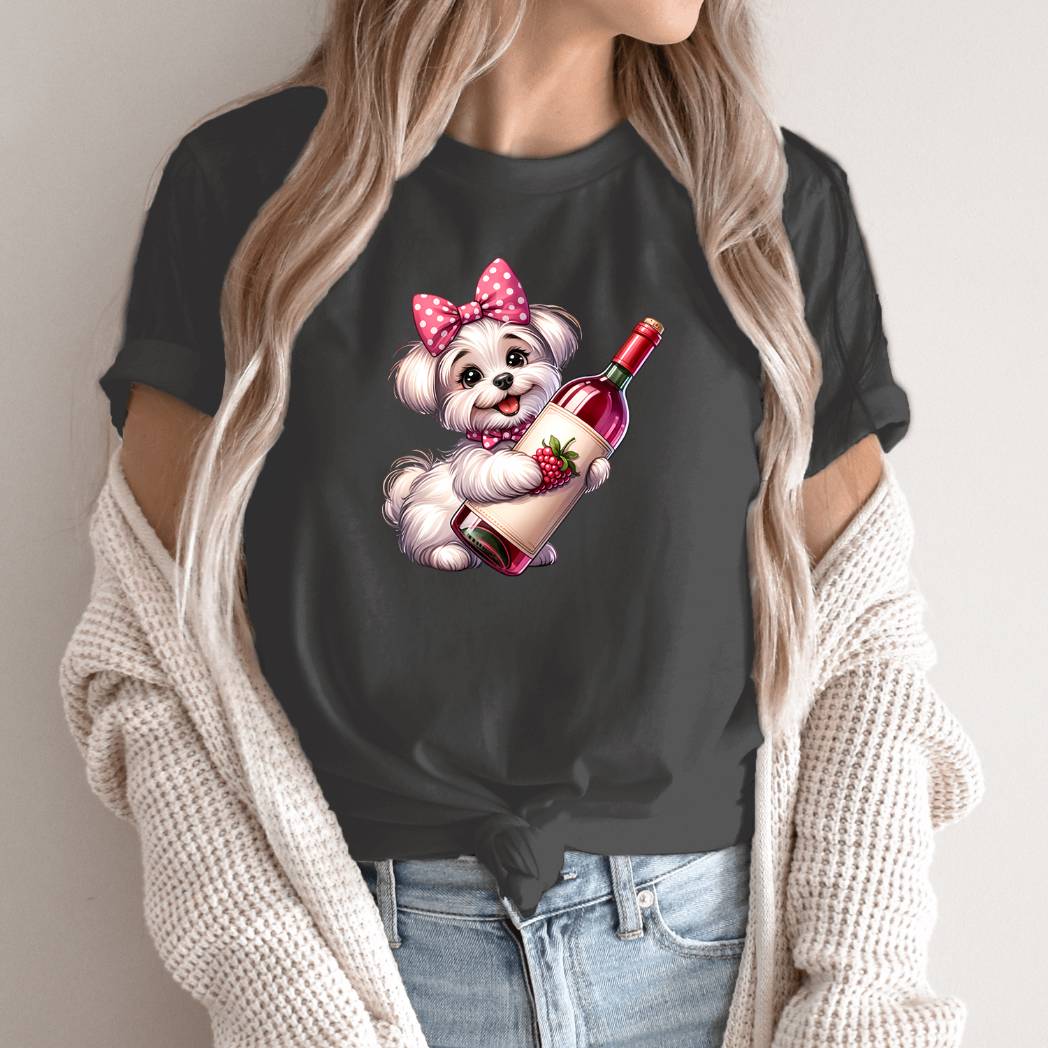 Unisex marškinėliai su spauda „Mažoji vyno ledi“