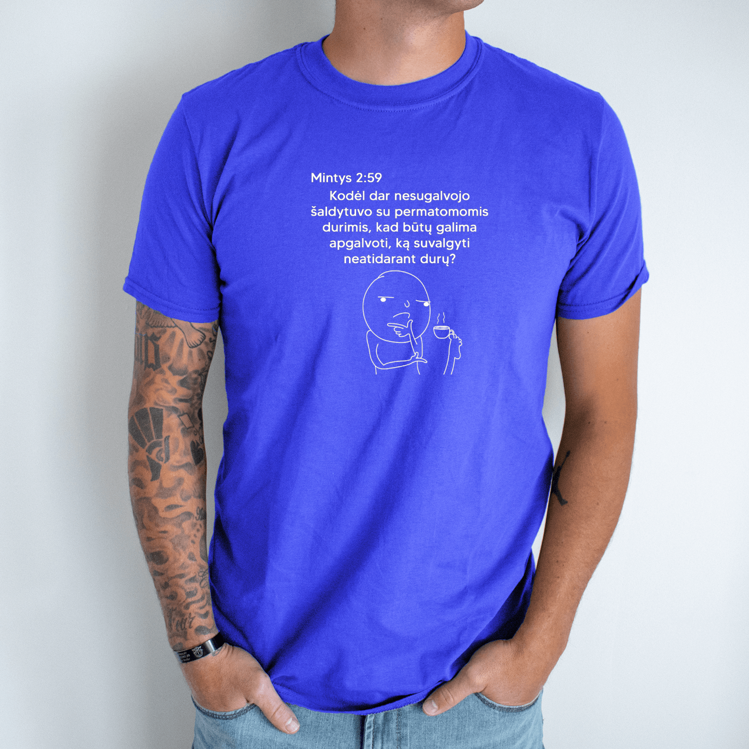Būkite pirmas aprašęs “Unisex marškinėliai su spauda „Mintys apie šaldytuvą“”