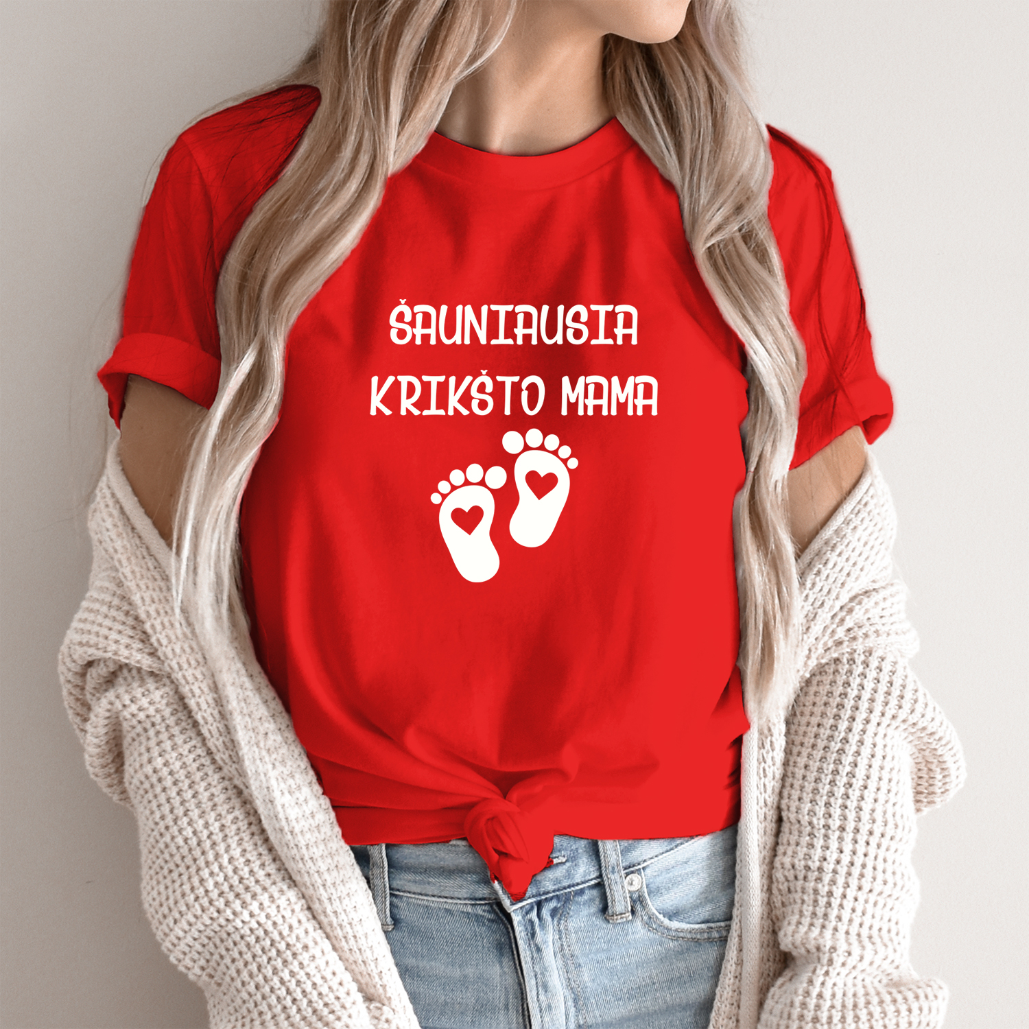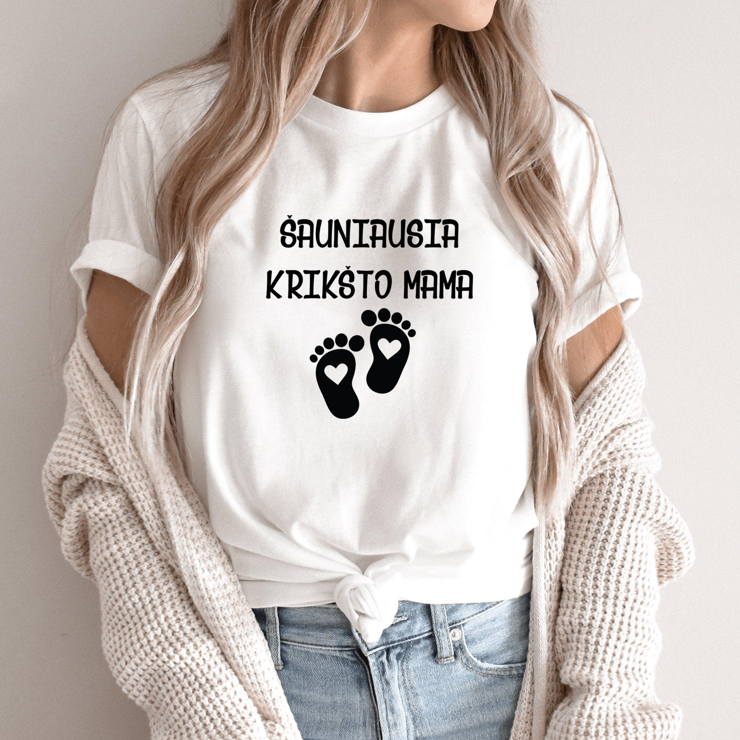 Unisex marškinėliai su spauda „Šauniausia Krikšto mama“