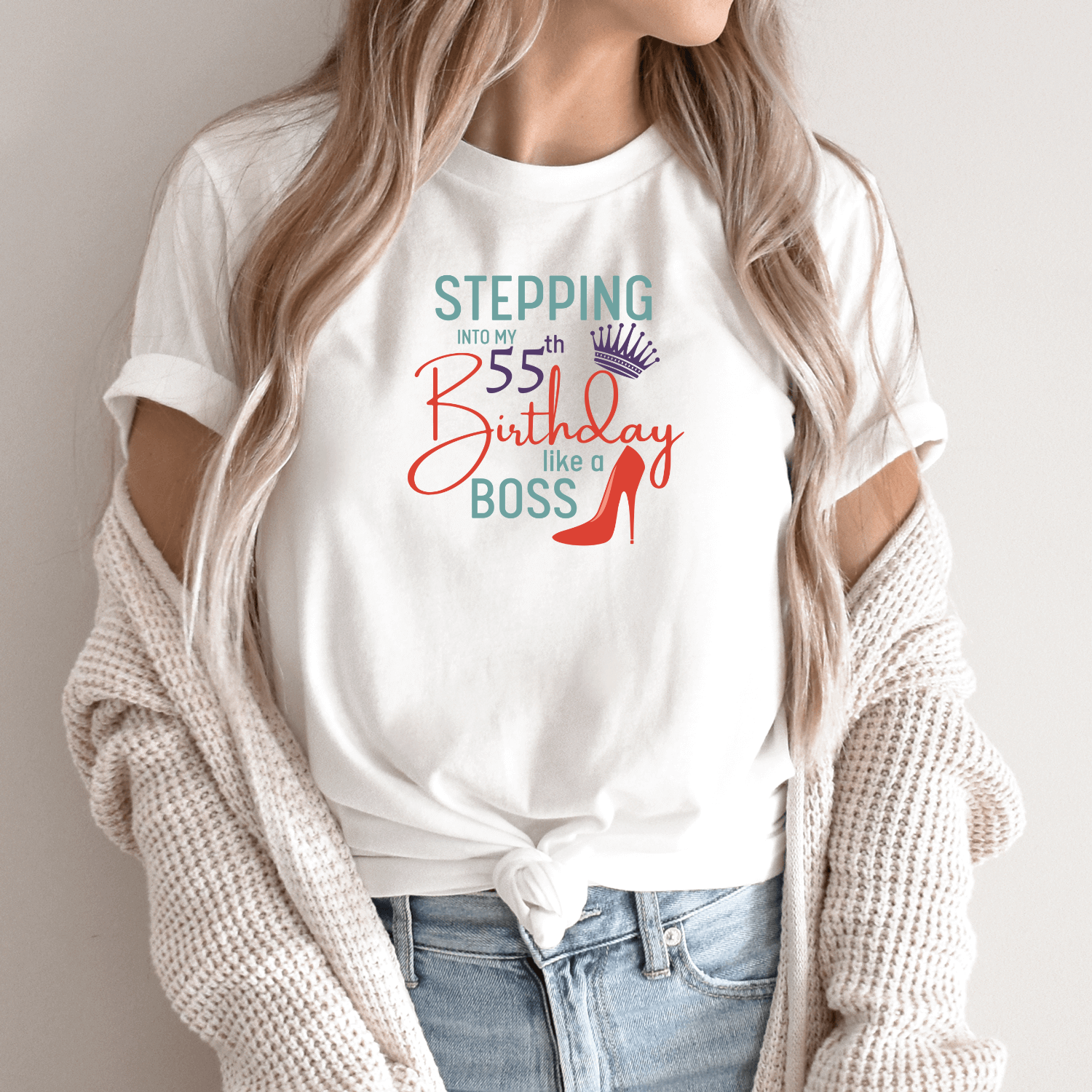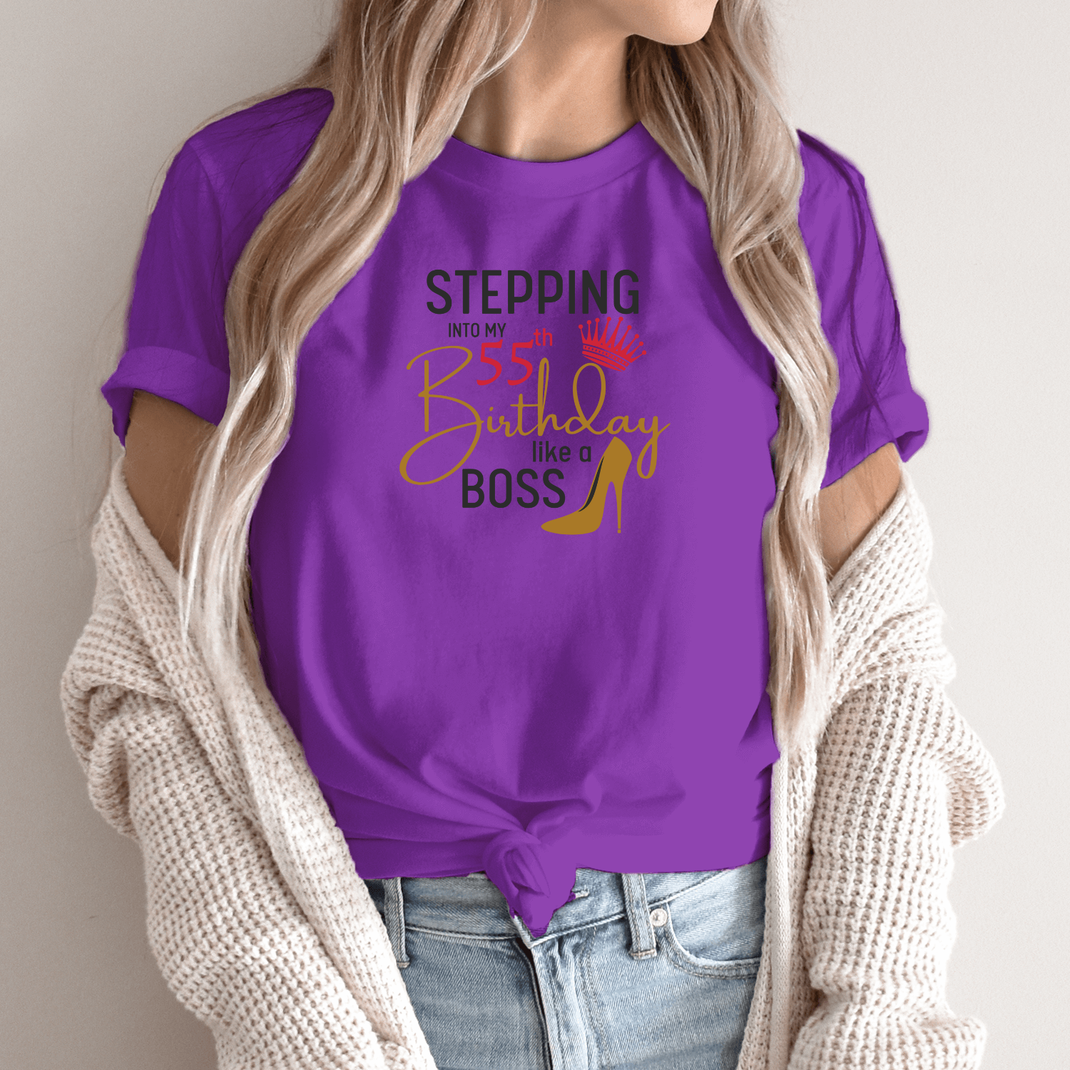 Unisex marškinėliai su spauda „Stepping to 55 like a Boss“