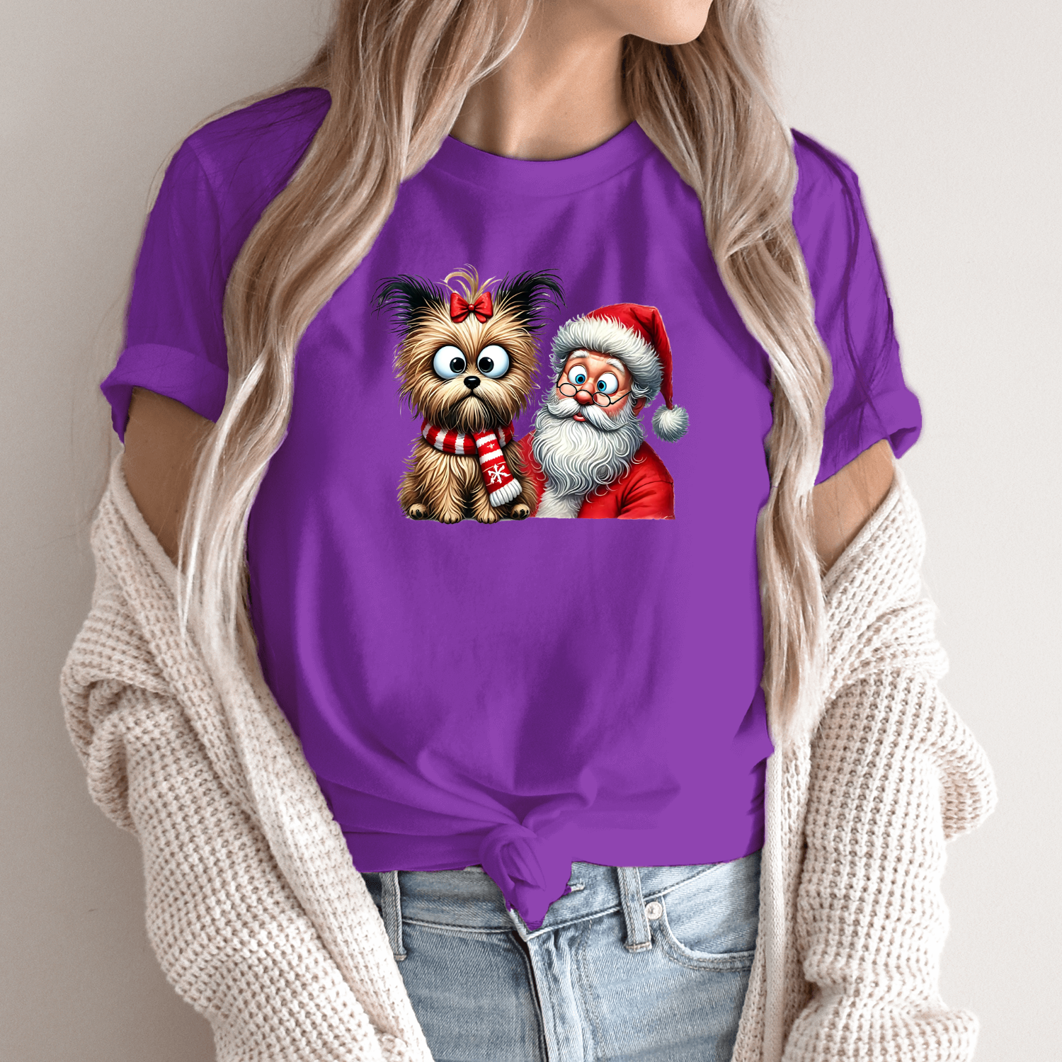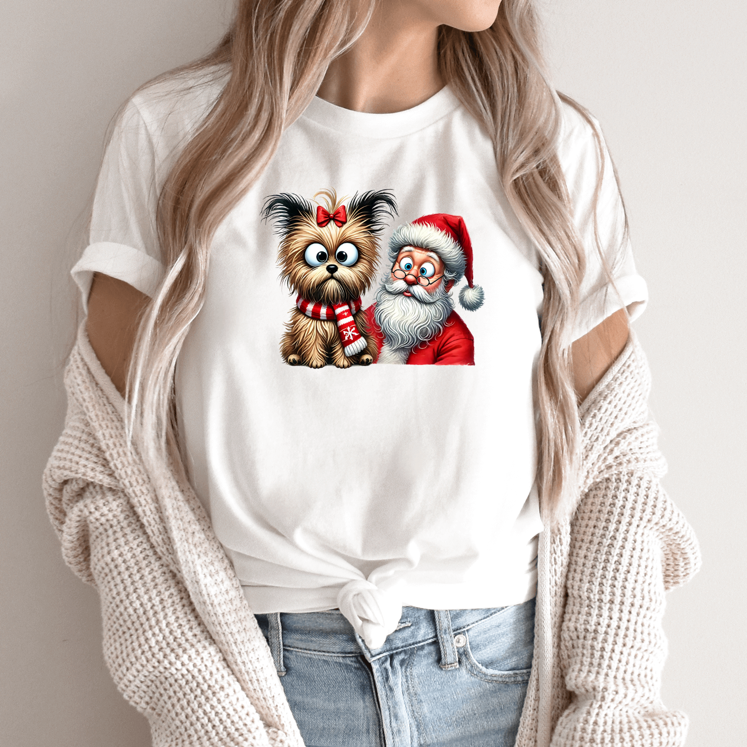 Unisex marškinėliai su spauda „Šuo pas Kalėdų senį“