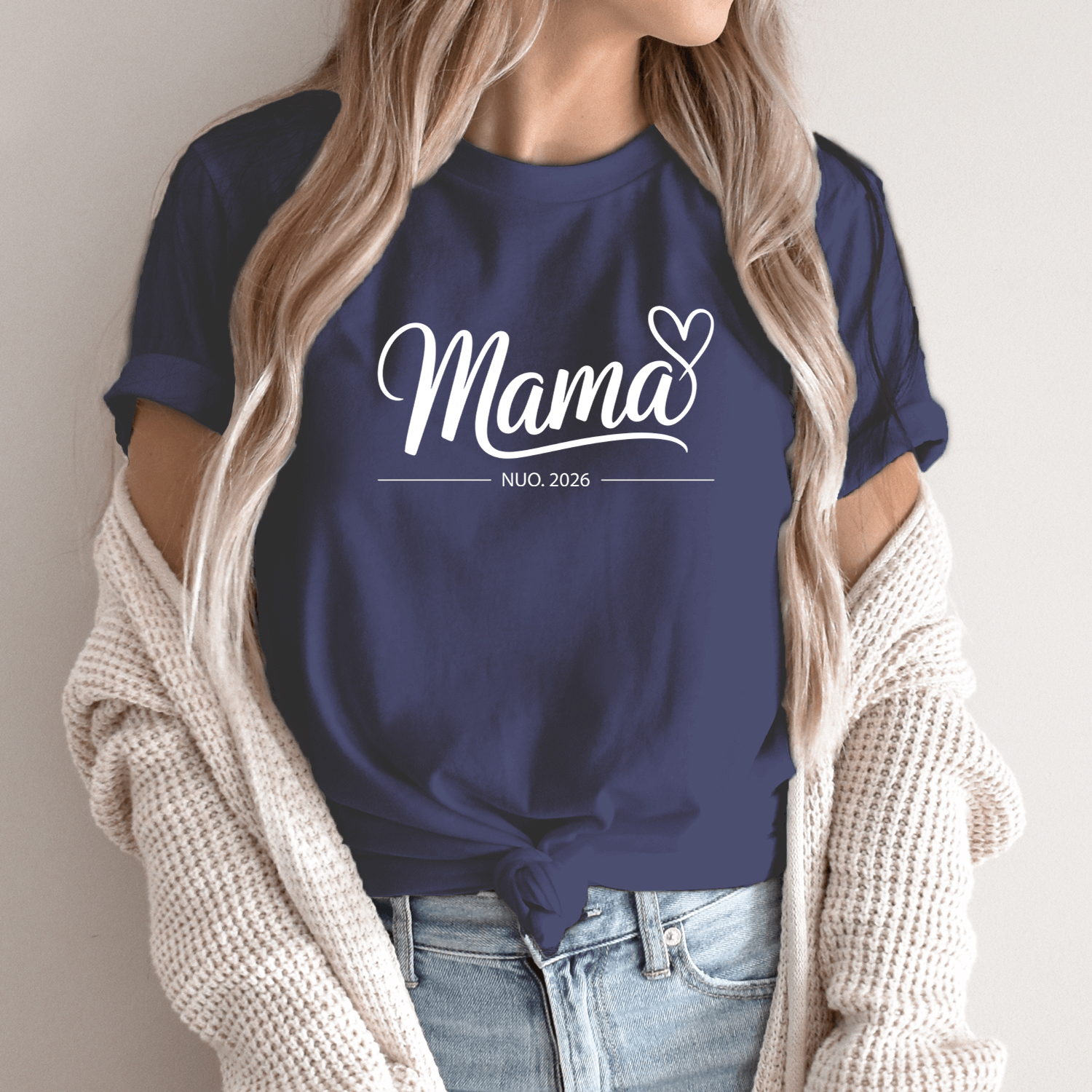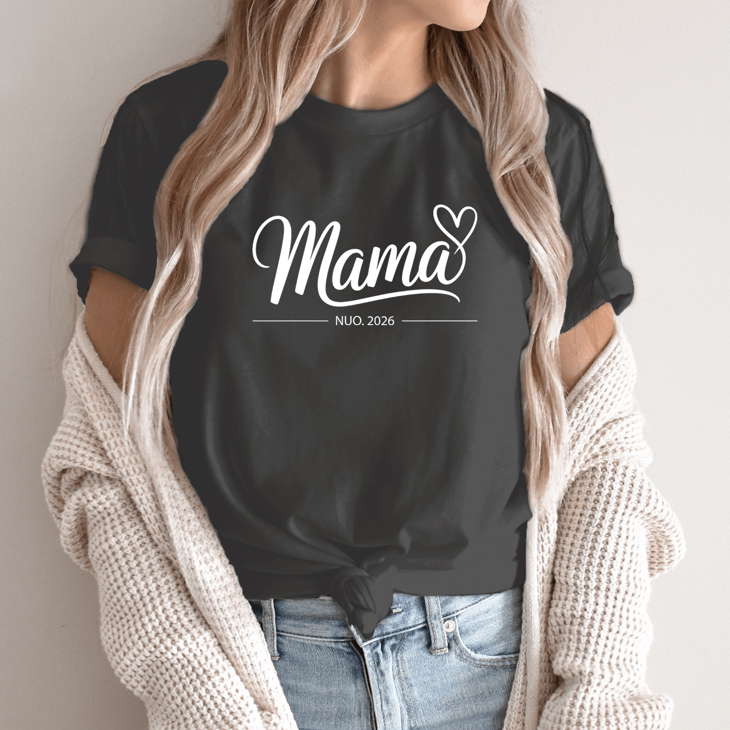 Unisex marškinėliai su spauda „Tapau mama“ su Jūsų data