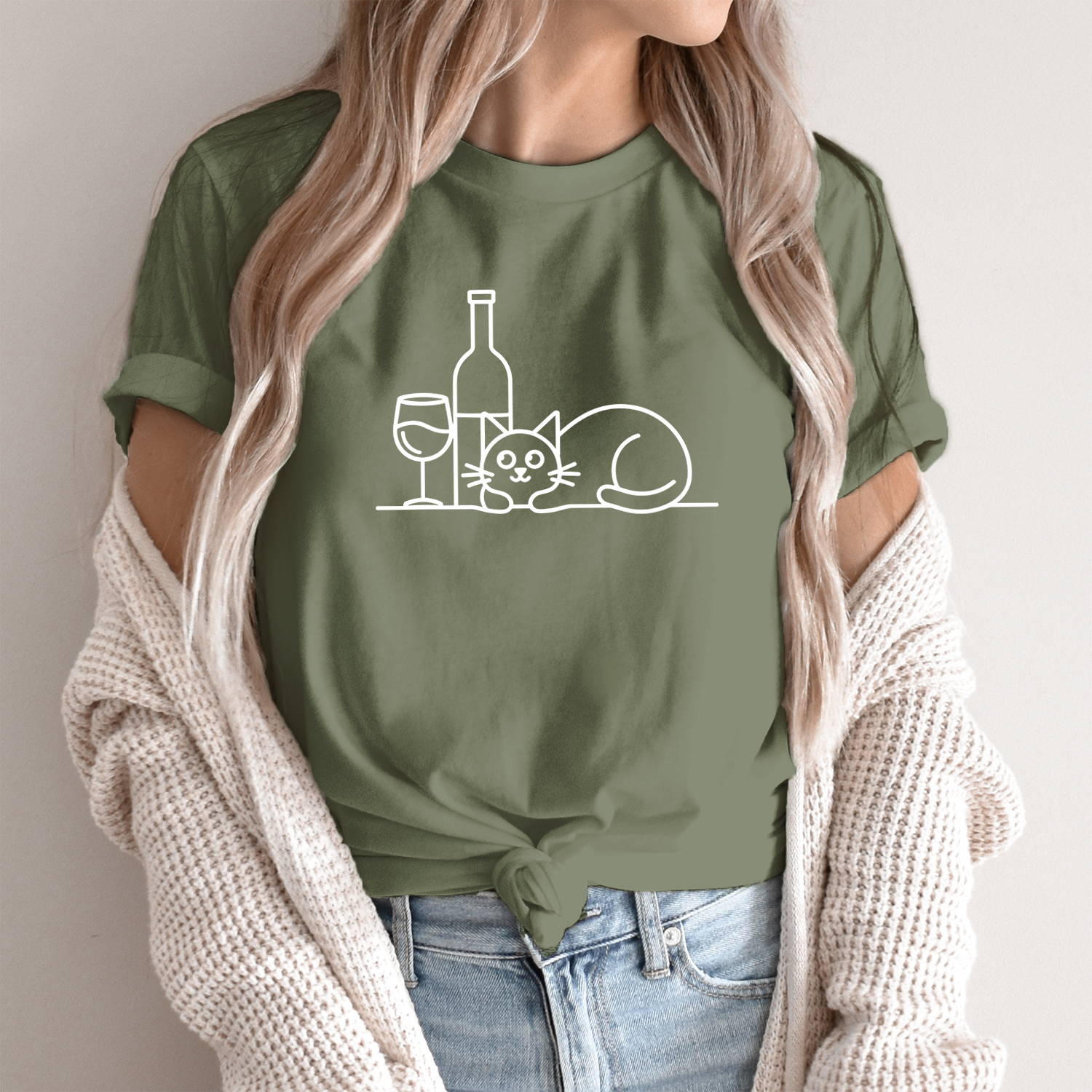 Unisex marškinėliai su spauda „Vynas ir ūsai“