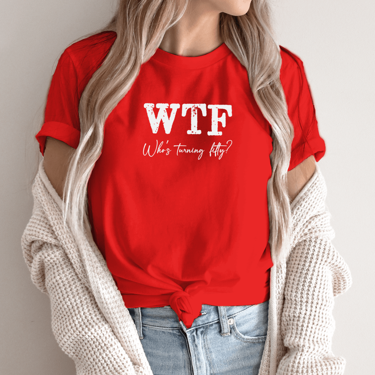 Unisex marškinėliai su spauda „Who’s turning fifty“
