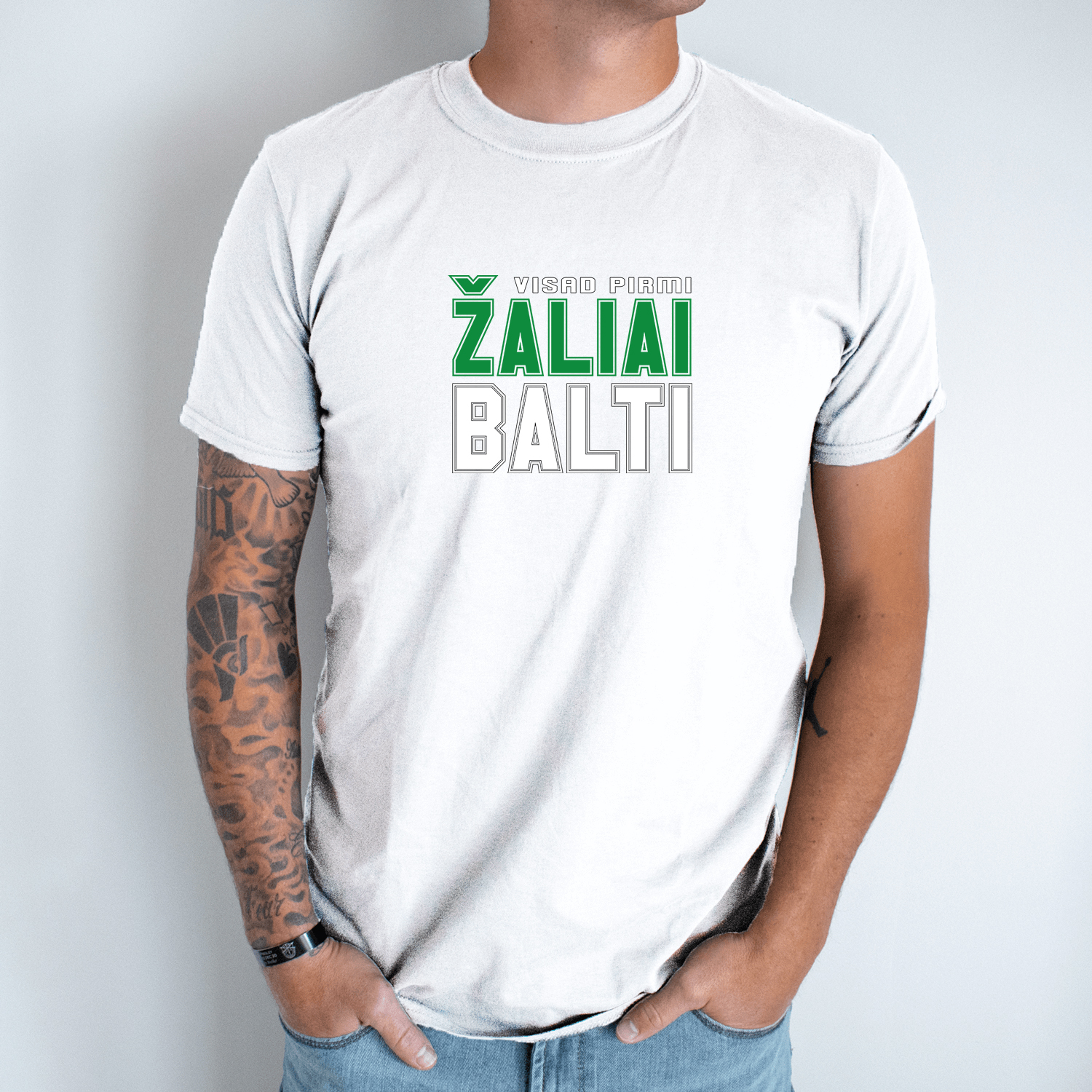 Unisex marškinėliai su spauda „Žalia galia, balta jėga“
