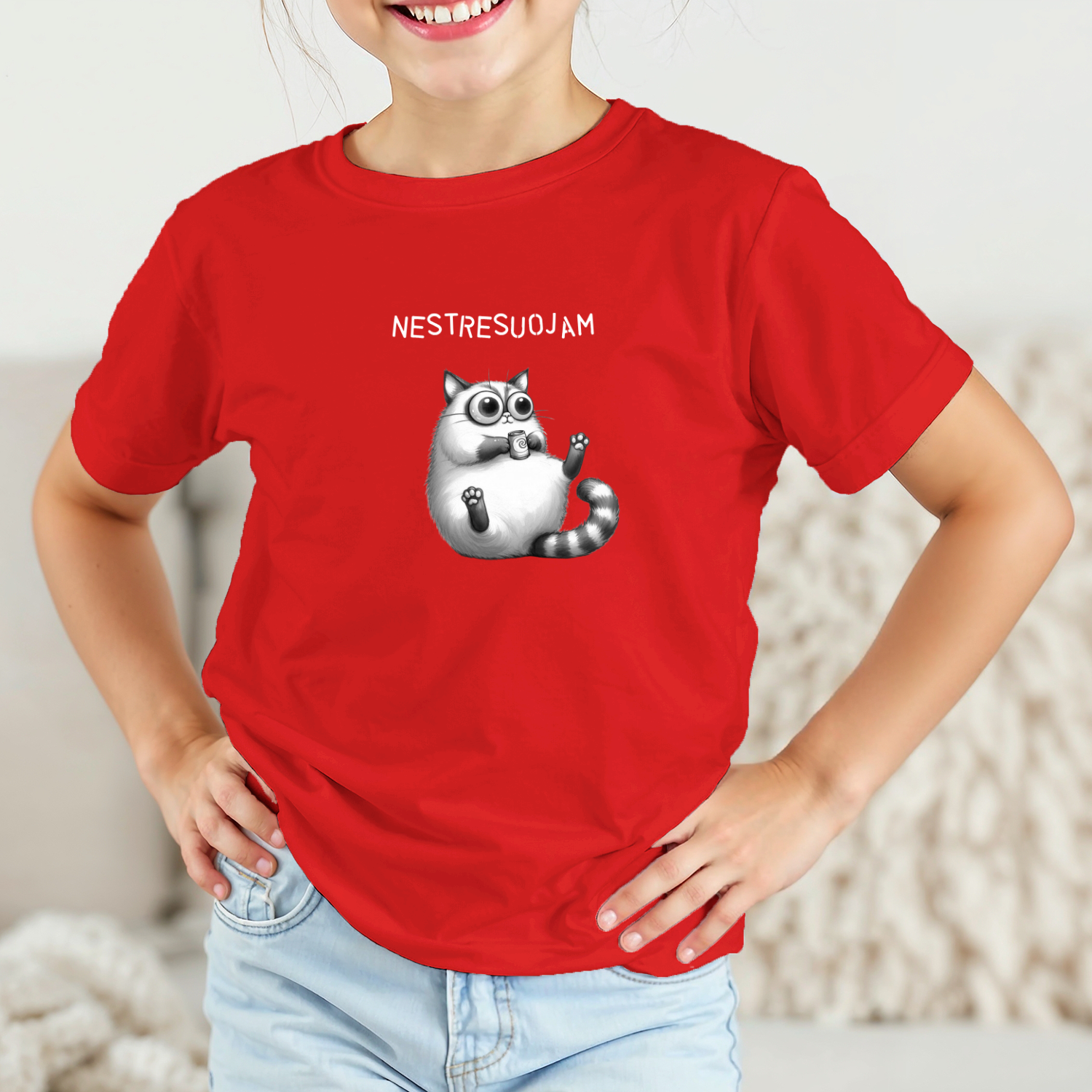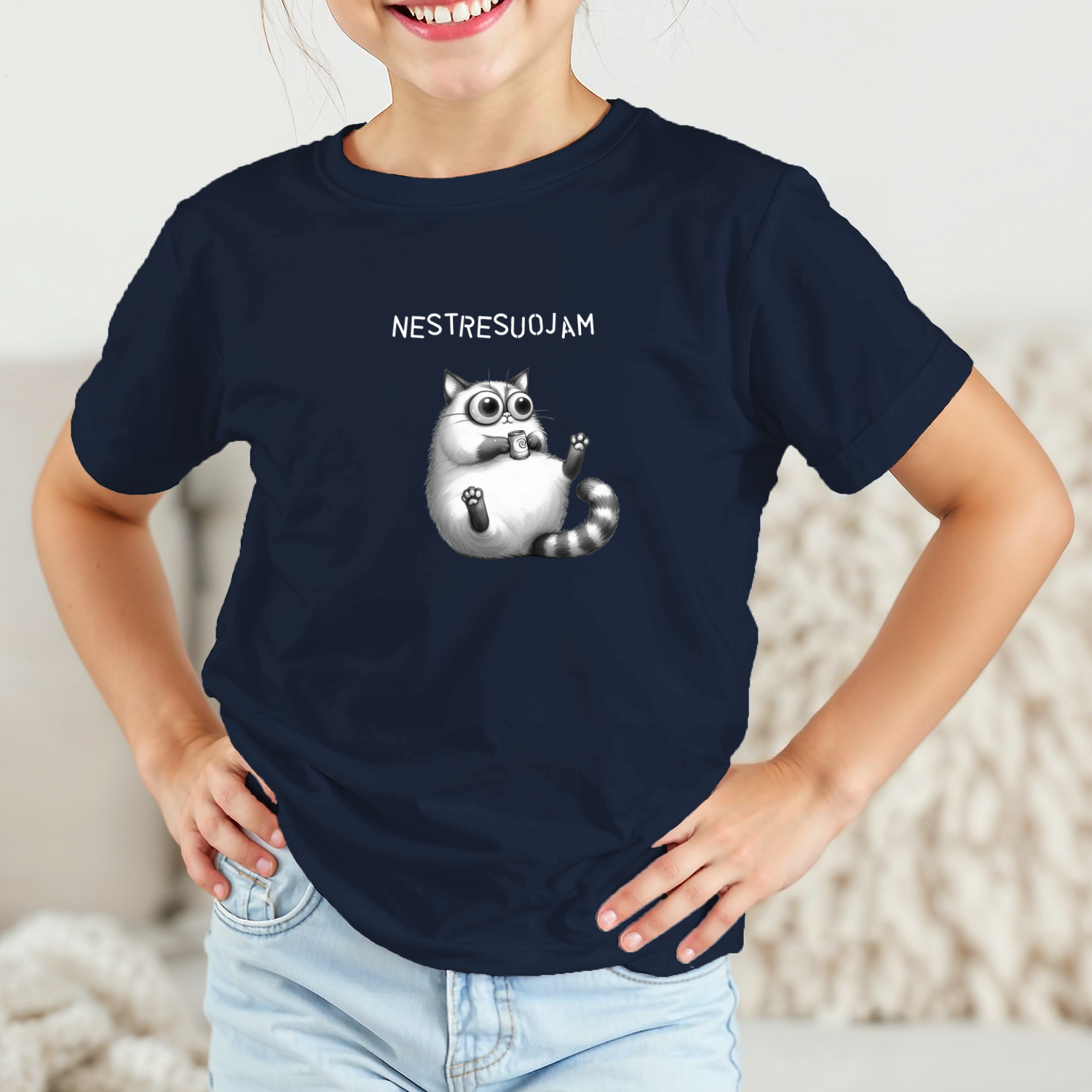 Vaikiški marškinėliai su spauda „Atsipalaidavęs katinas“