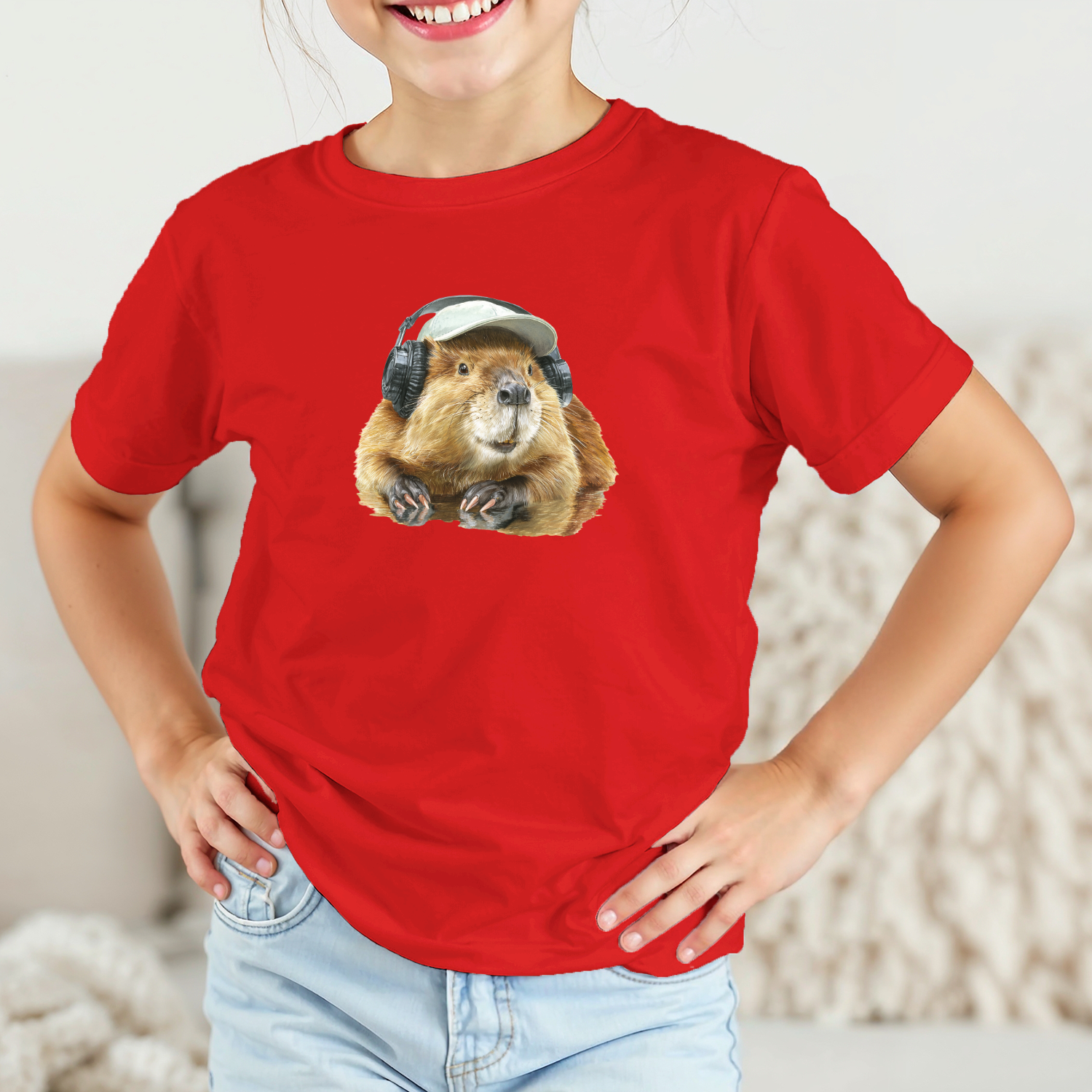 Vaikiški marškinėliai su spauda „DJ Bebras“