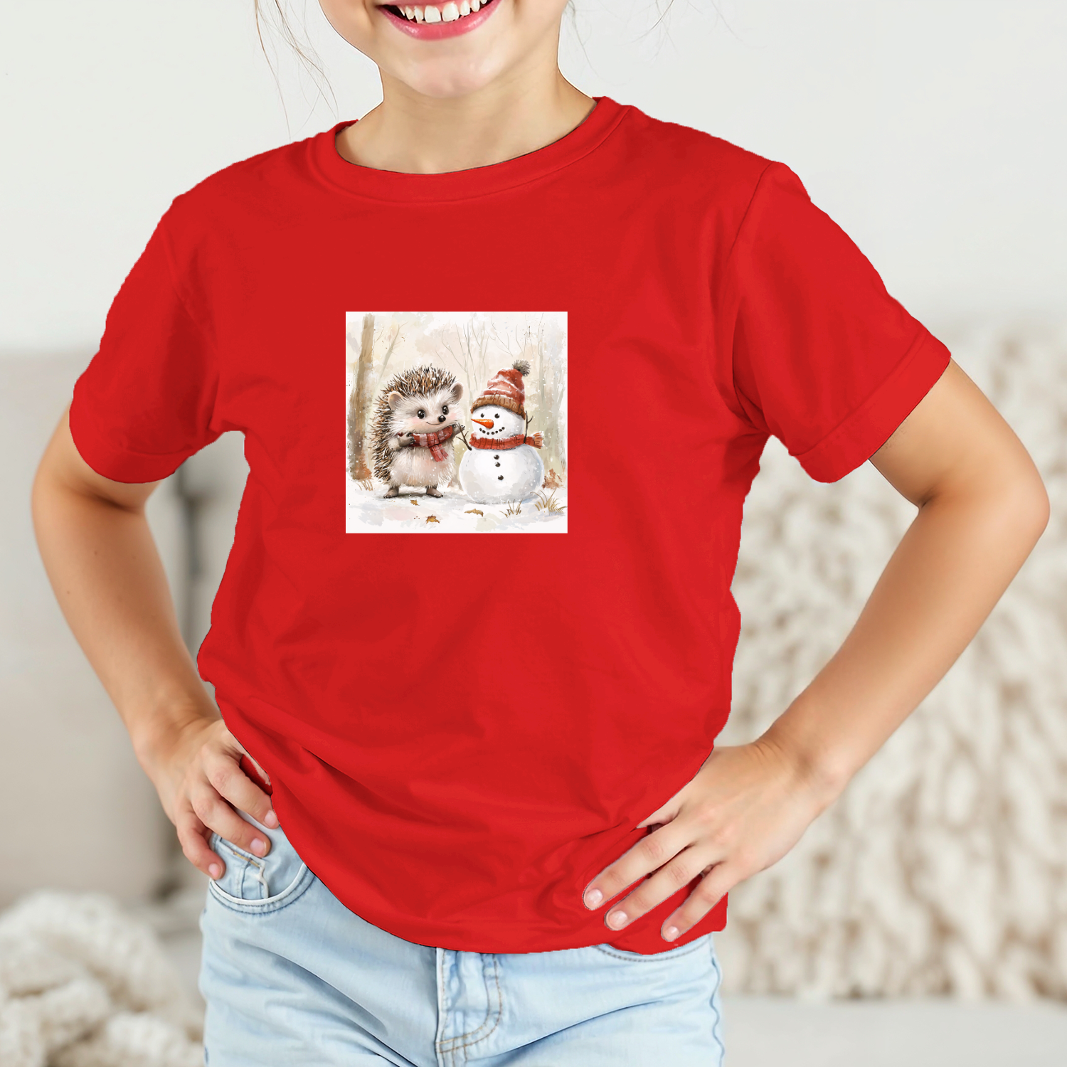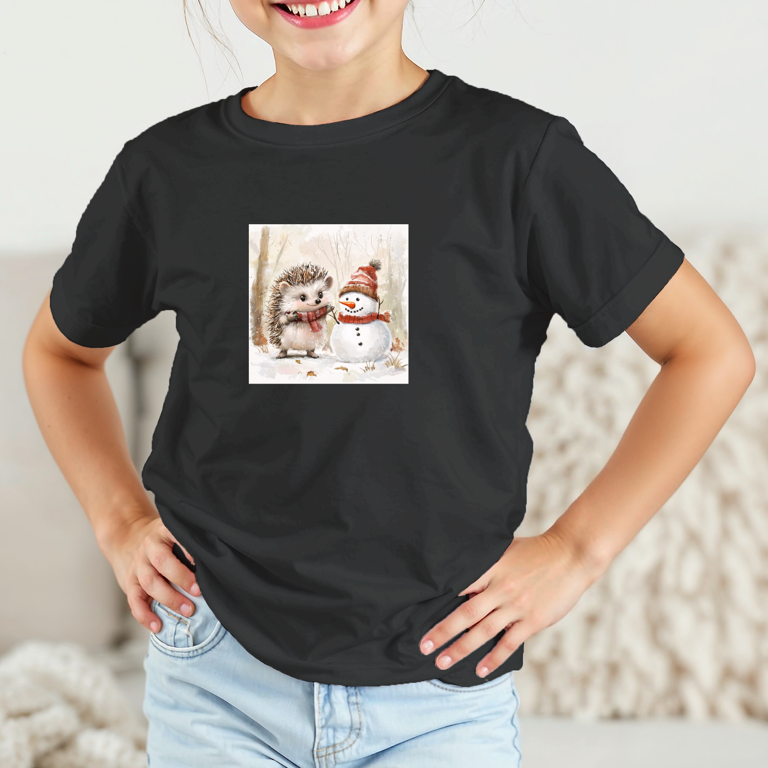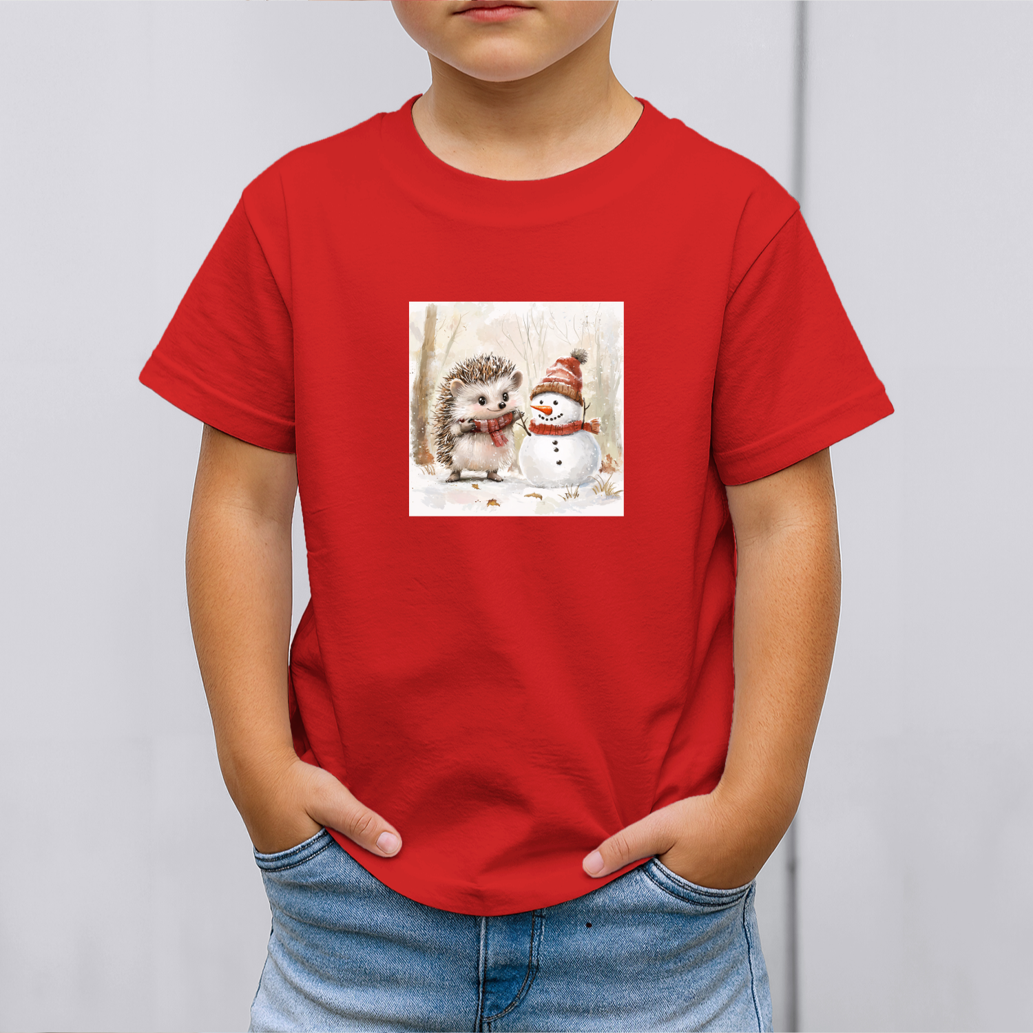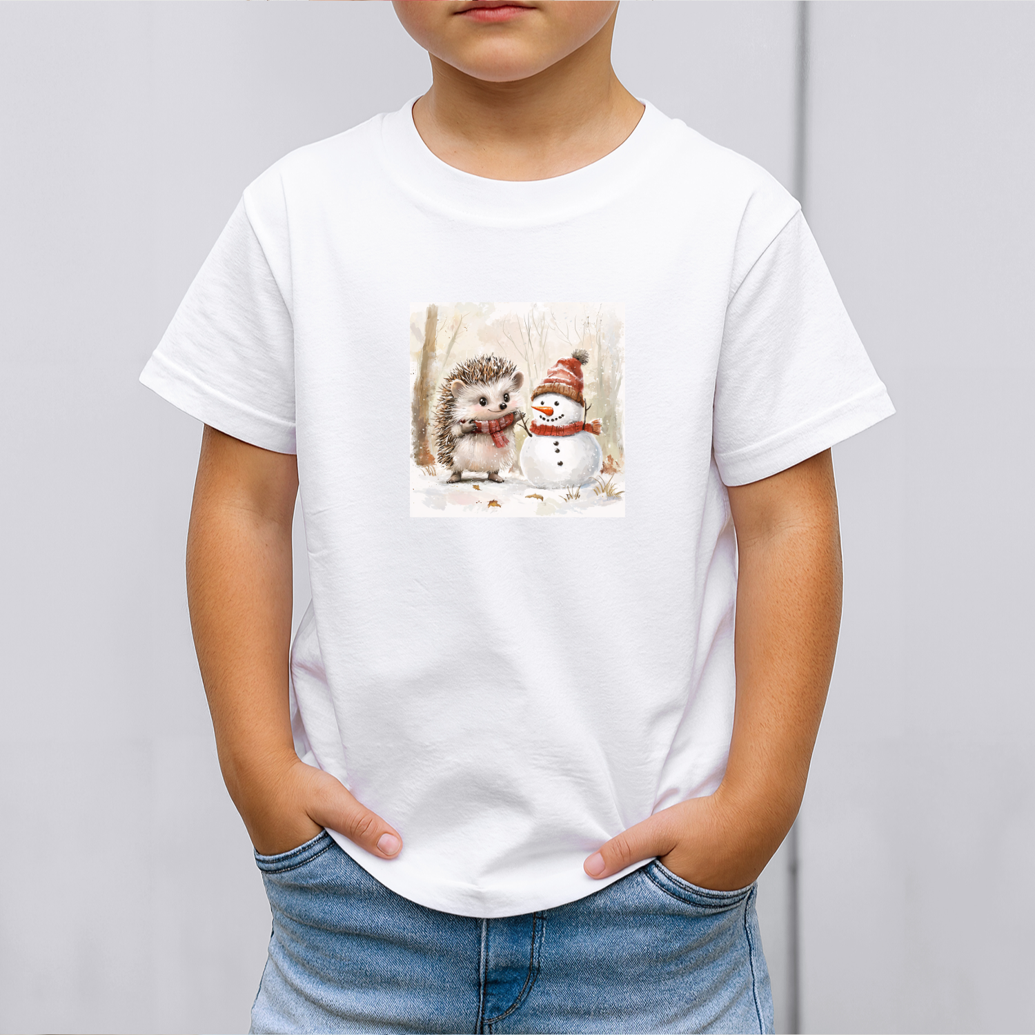 Vaikiški marškinėliai su spauda „Ežiuko ir sniego senio draugystė“