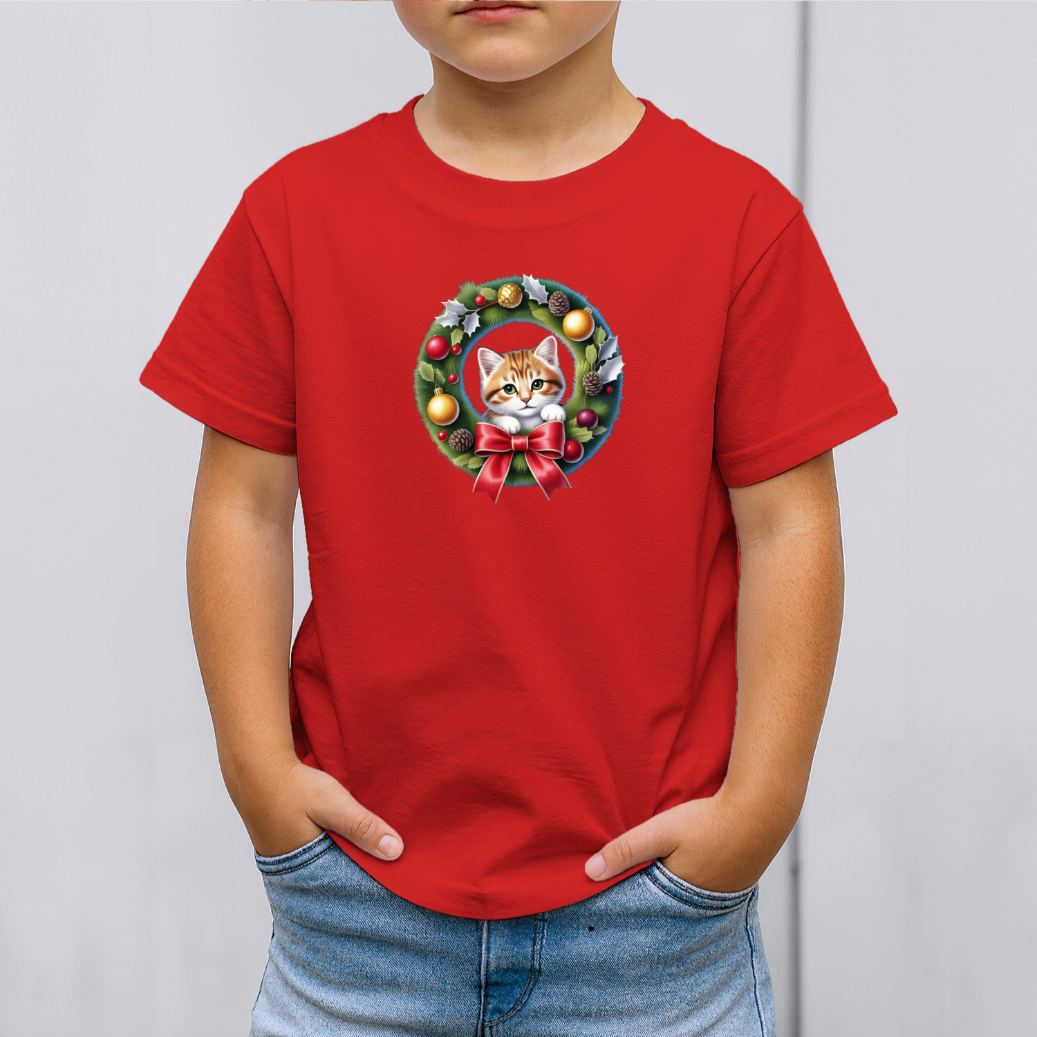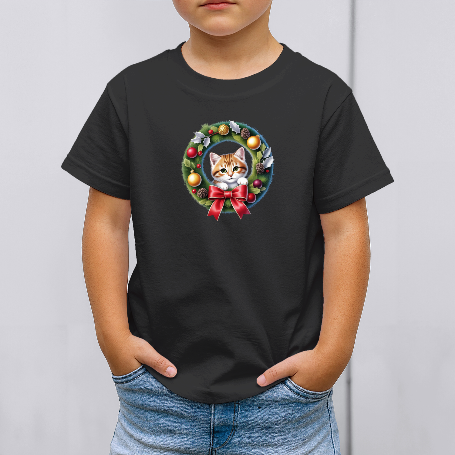 Vaikiški marškinėliai su spauda „Kačiukas Kalėdiniame vainike“