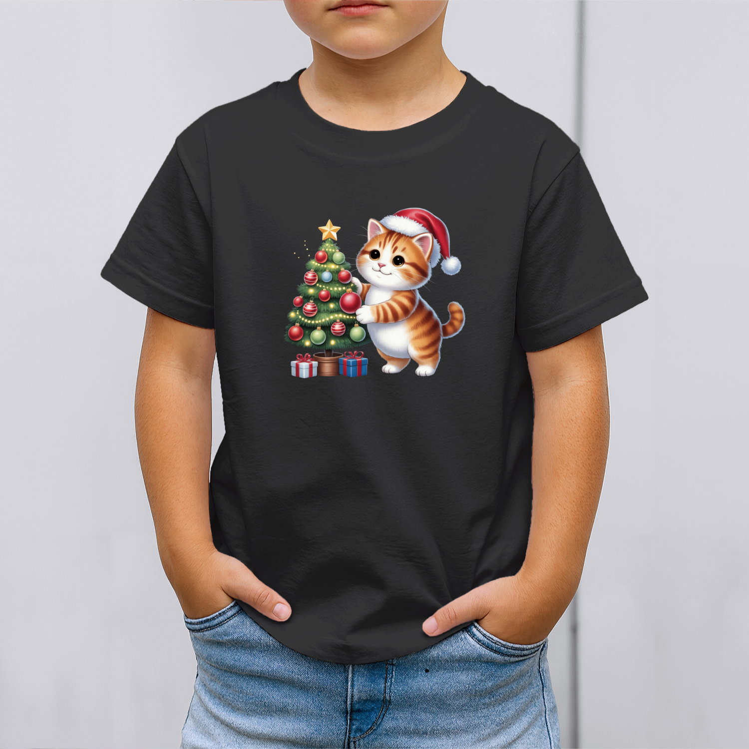 Vaikiški marškinėliai su spauda „Kačiukas puošia eglutę“