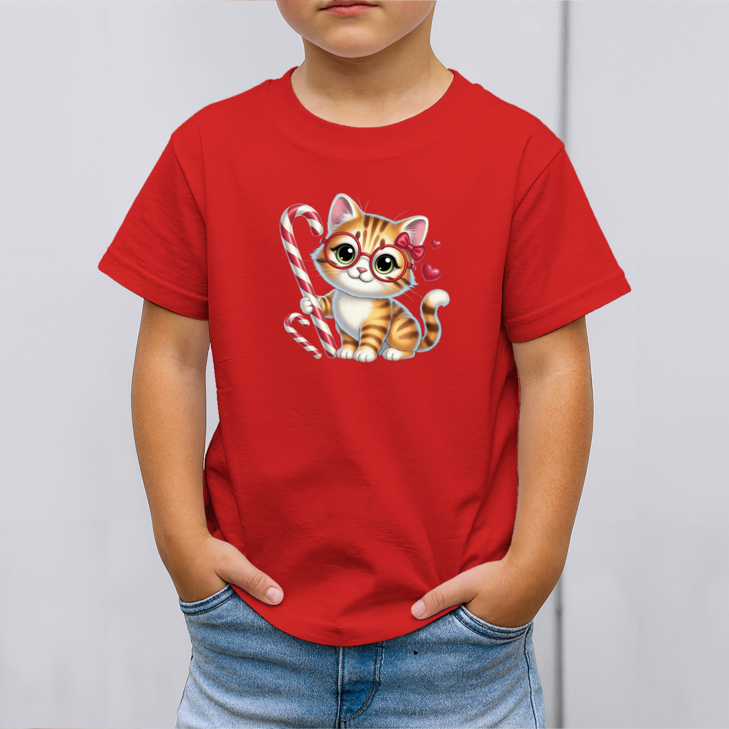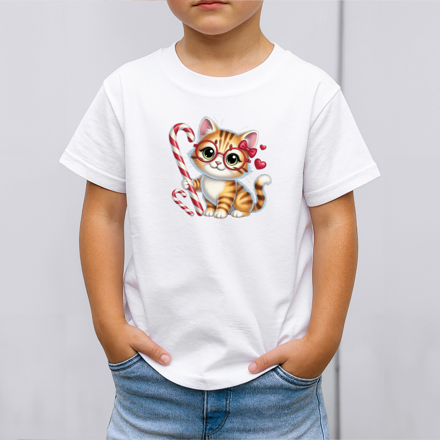 Vaikiški marškinėliai su spauda „Kačiukas su saldainine lazdele“