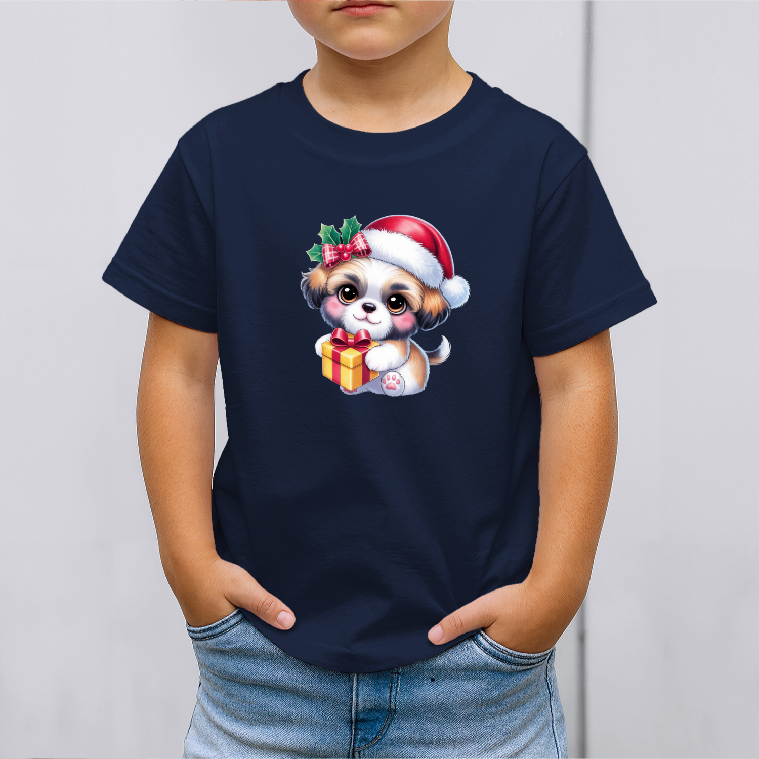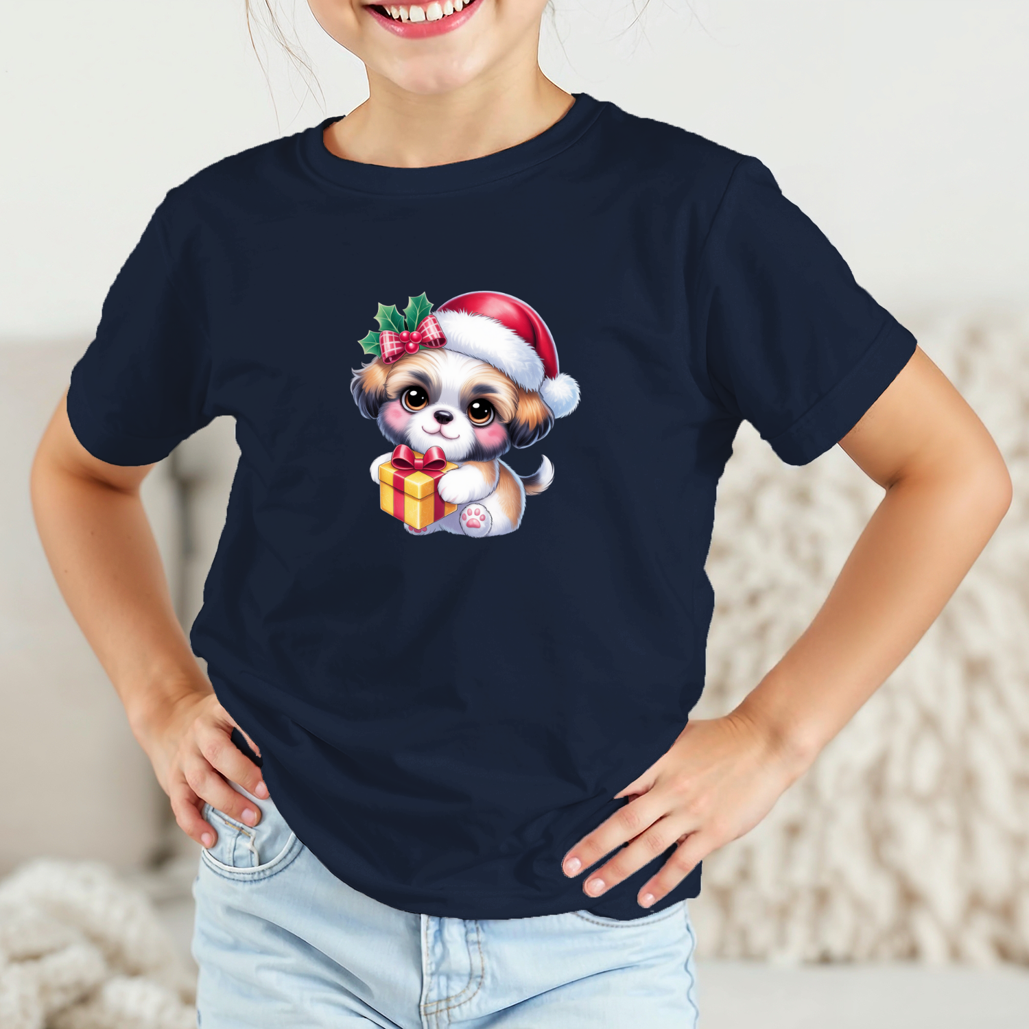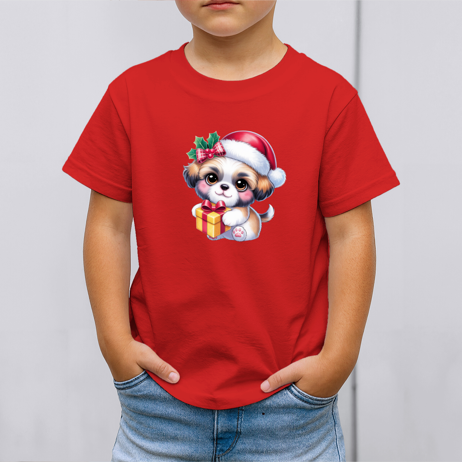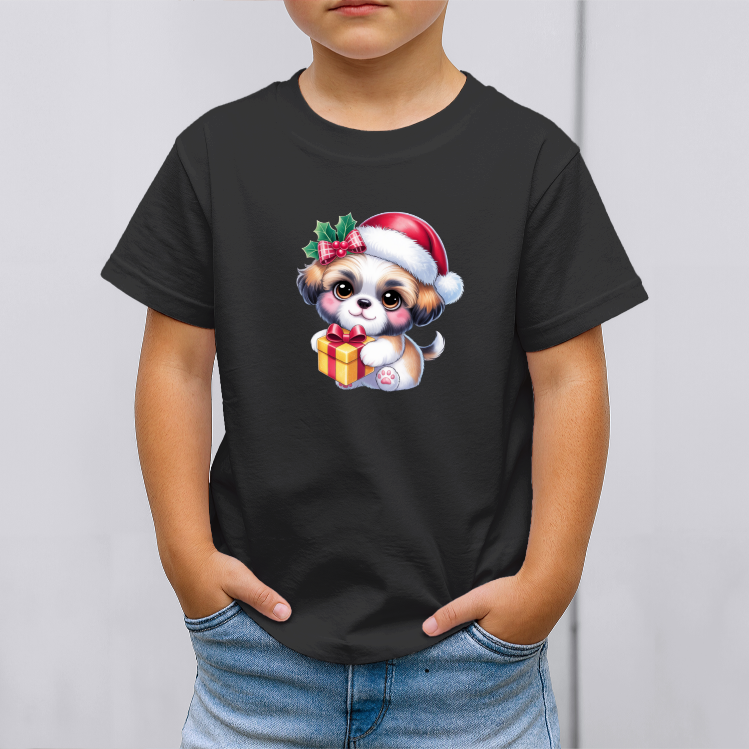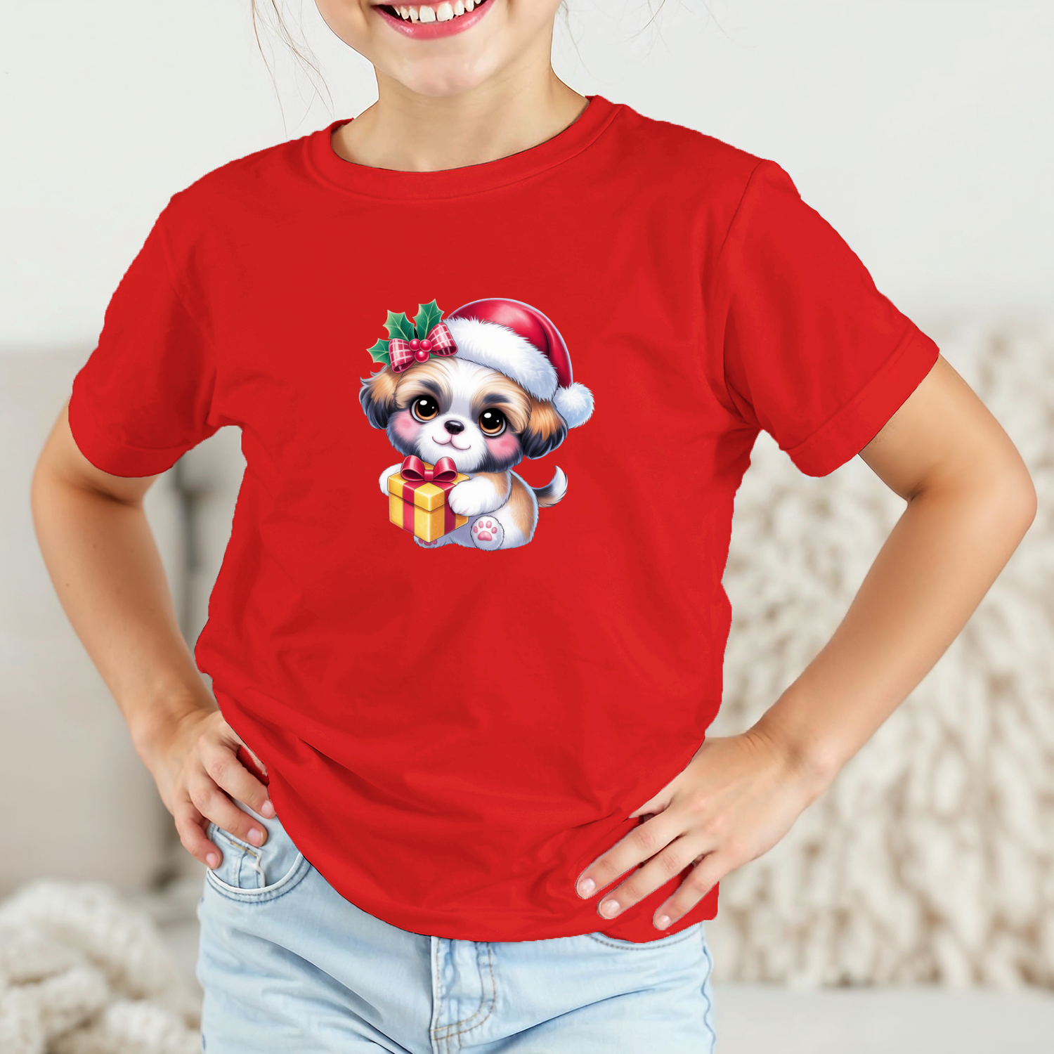 Vaikiški marškinėliai su spauda „Kalėdinis šuniukas“