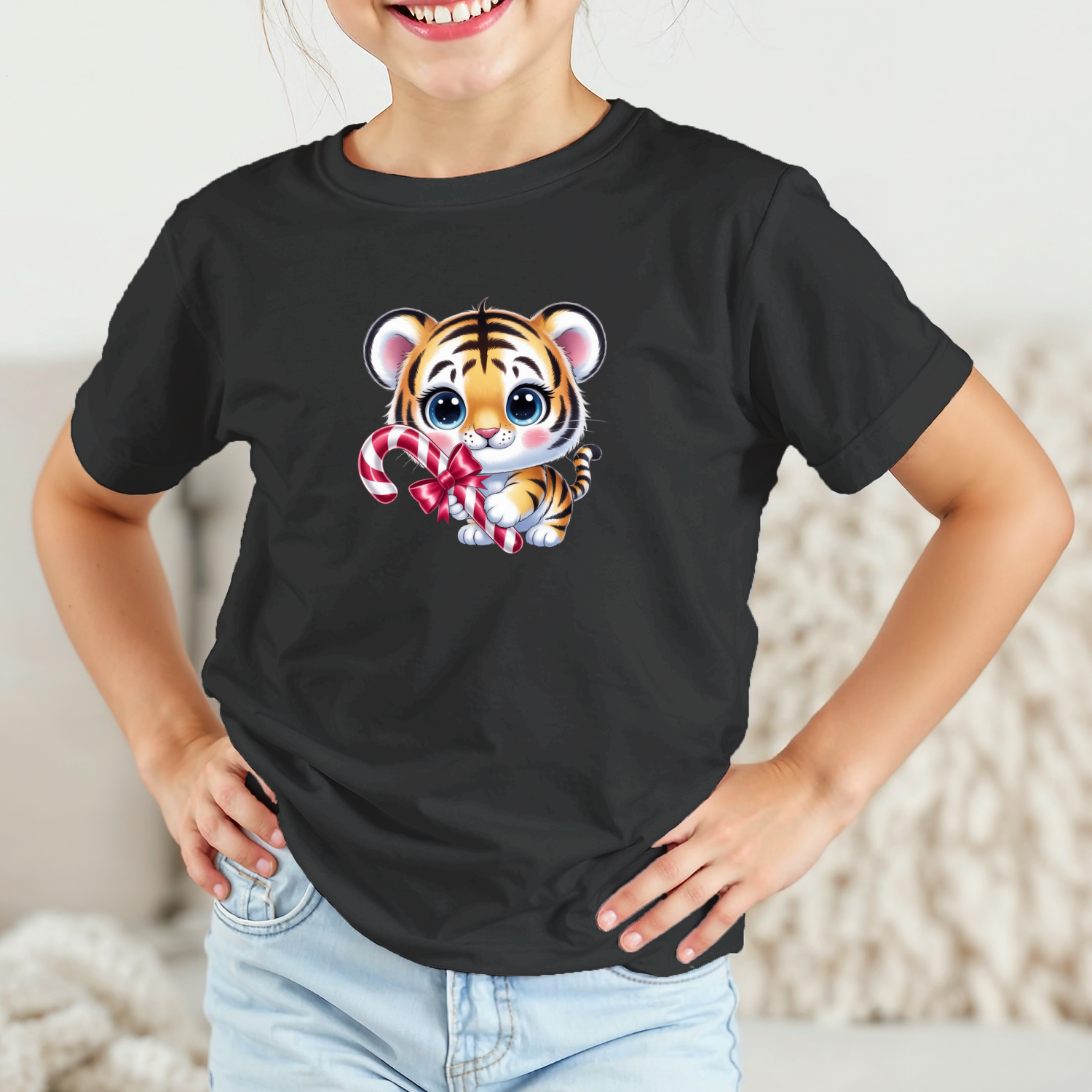 Vaikiški marškinėliai su spauda „Kalėdų tigriukas“