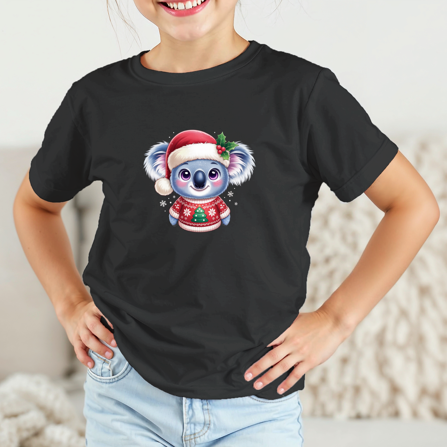 Būkite pirmas aprašęs “Vaikiški marškinėliai su spauda „Koala su kalėdiniu megztuku“”