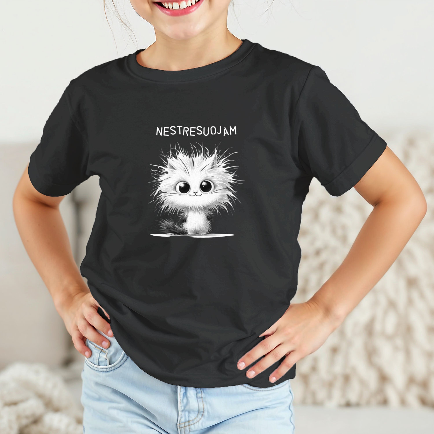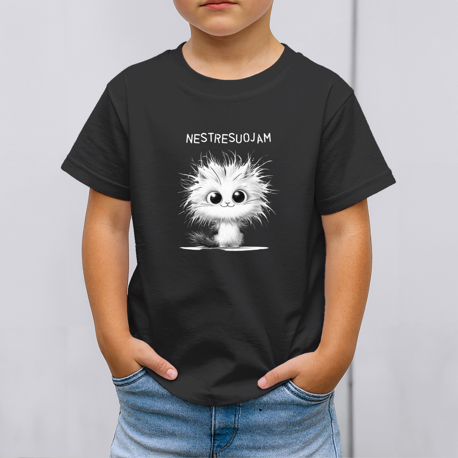 Būkite pirmas aprašęs “Vaikiški marškinėliai su spauda „Laimingas katinas“”