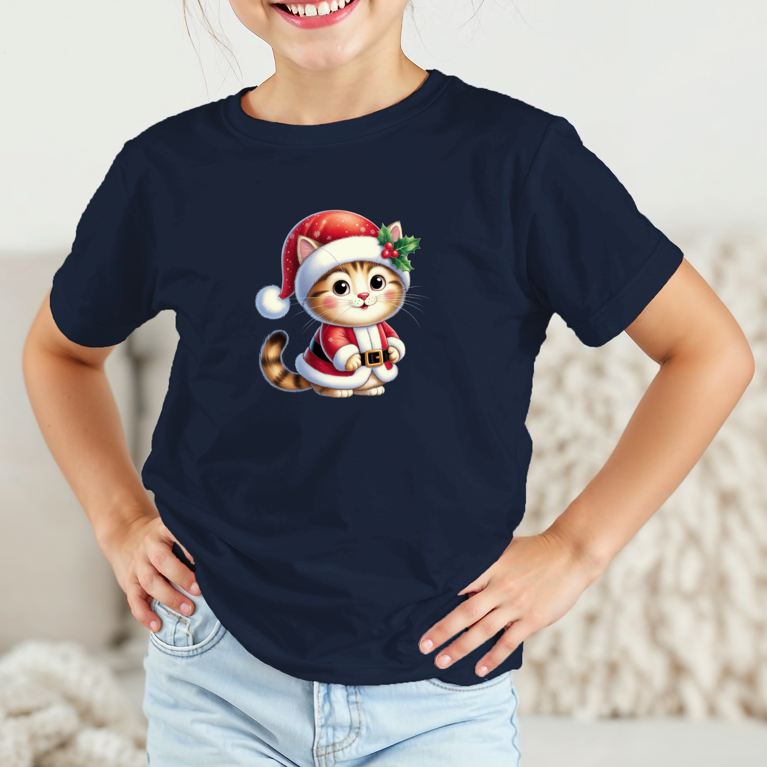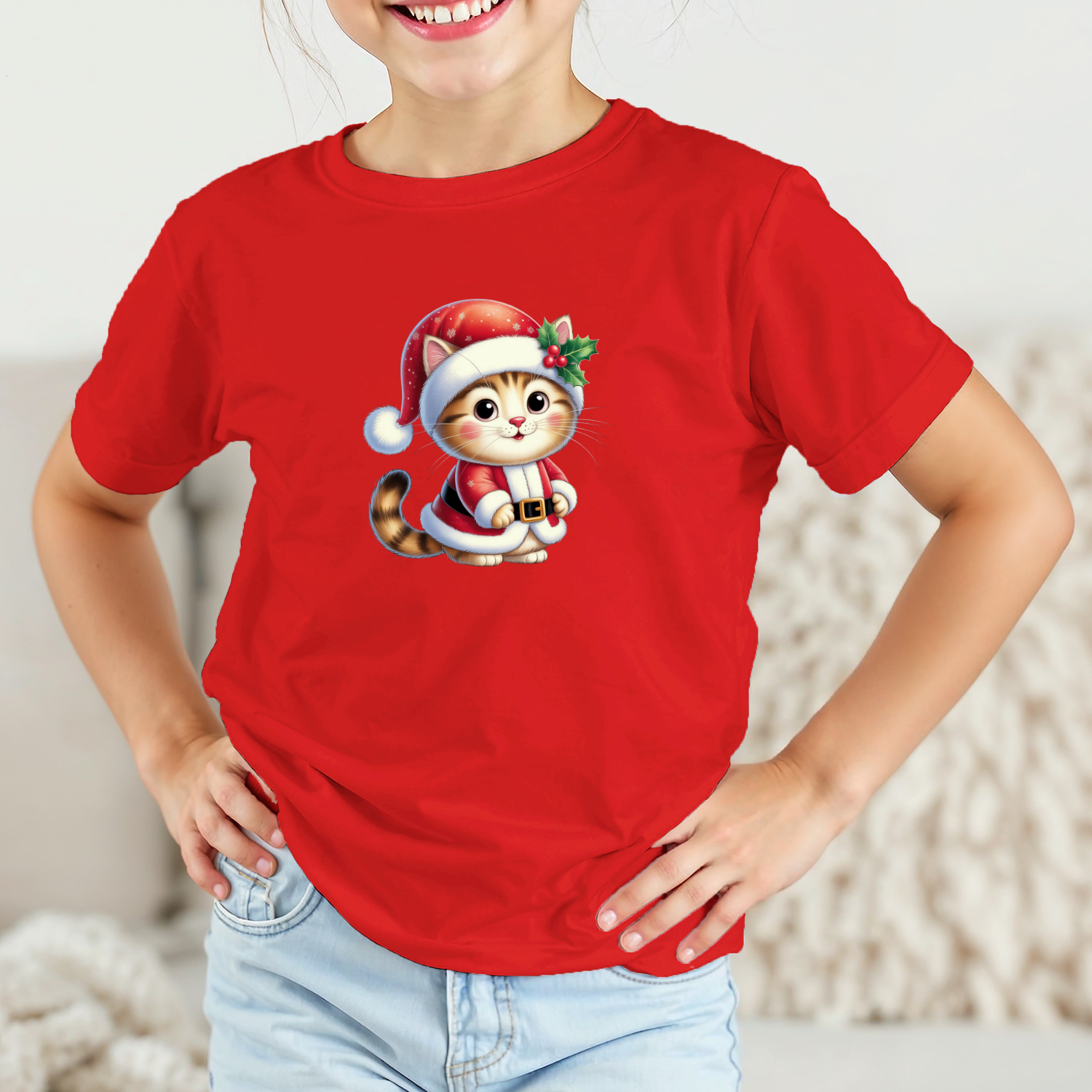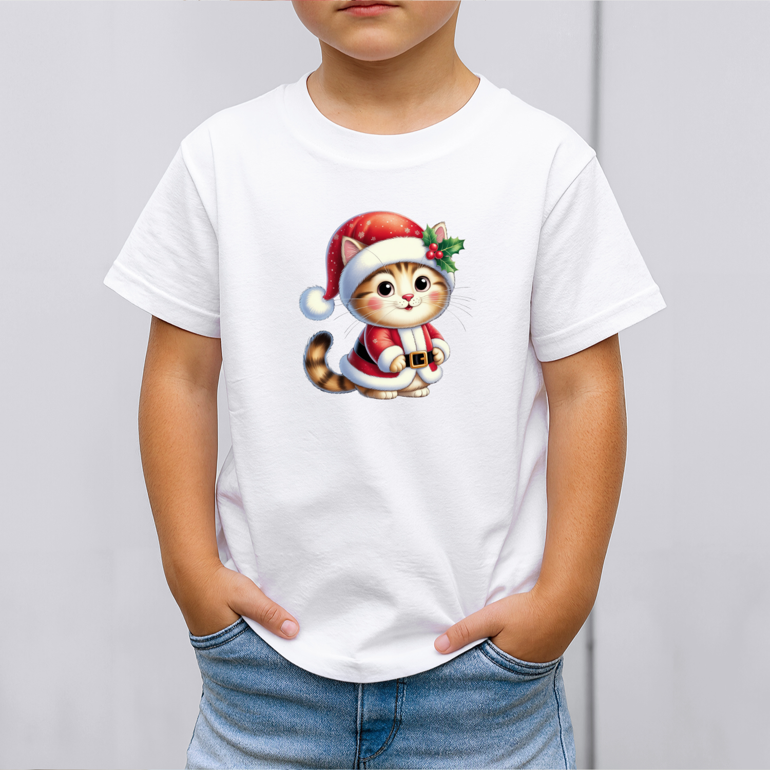 Vaikiški marškinėliai su spauda „Mažasis Kalėdų senelis kačiukas“