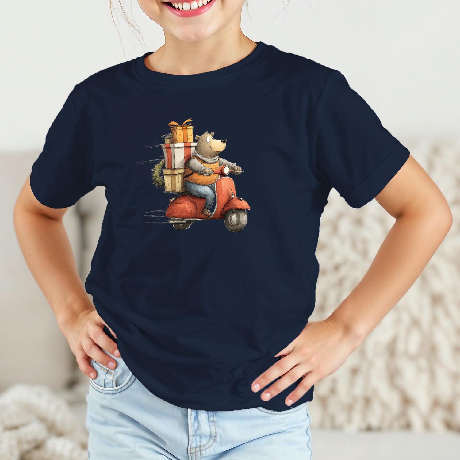 Vaikiški marškinėliai su spauda „Meškiukas kelyje į šventes“