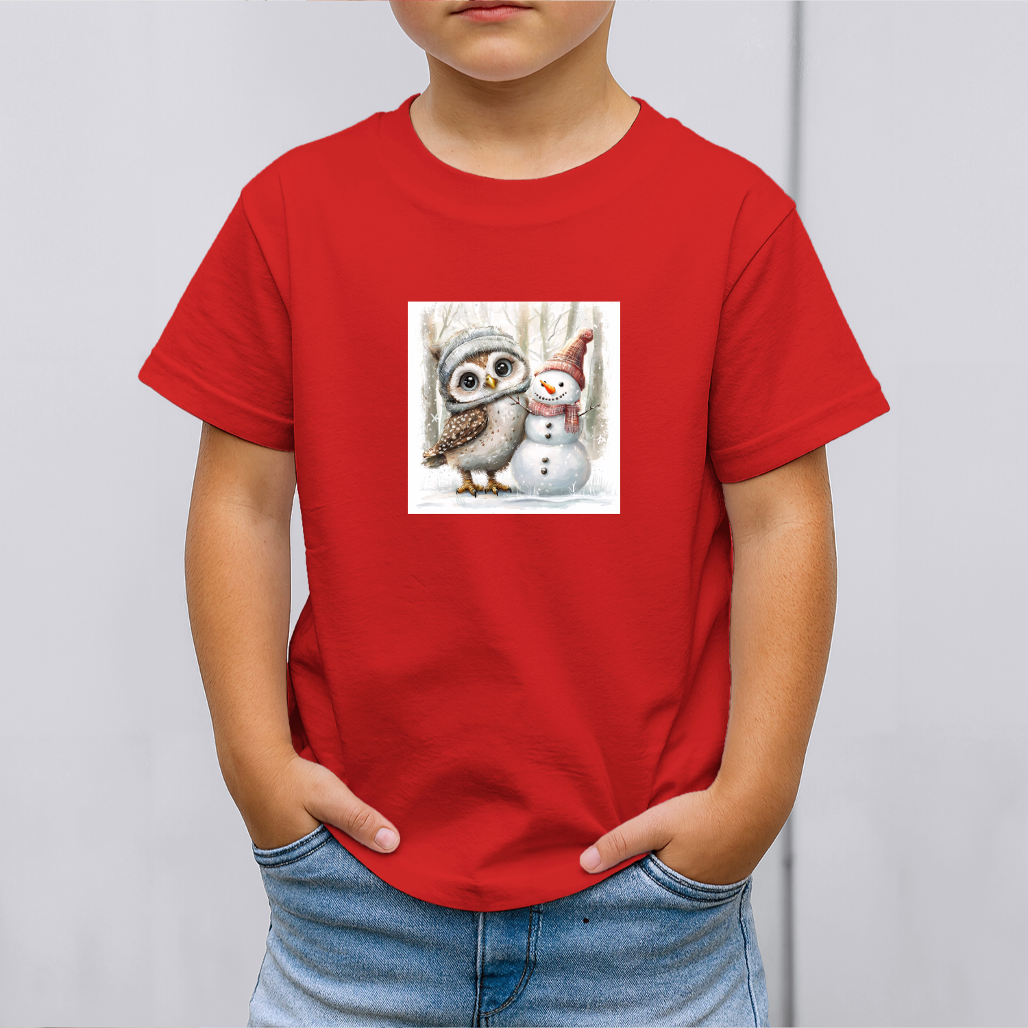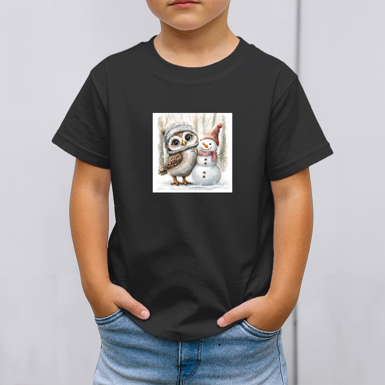 Vaikiški marškinėliai su spauda „Pelėdos ir sniego senio draugystė“