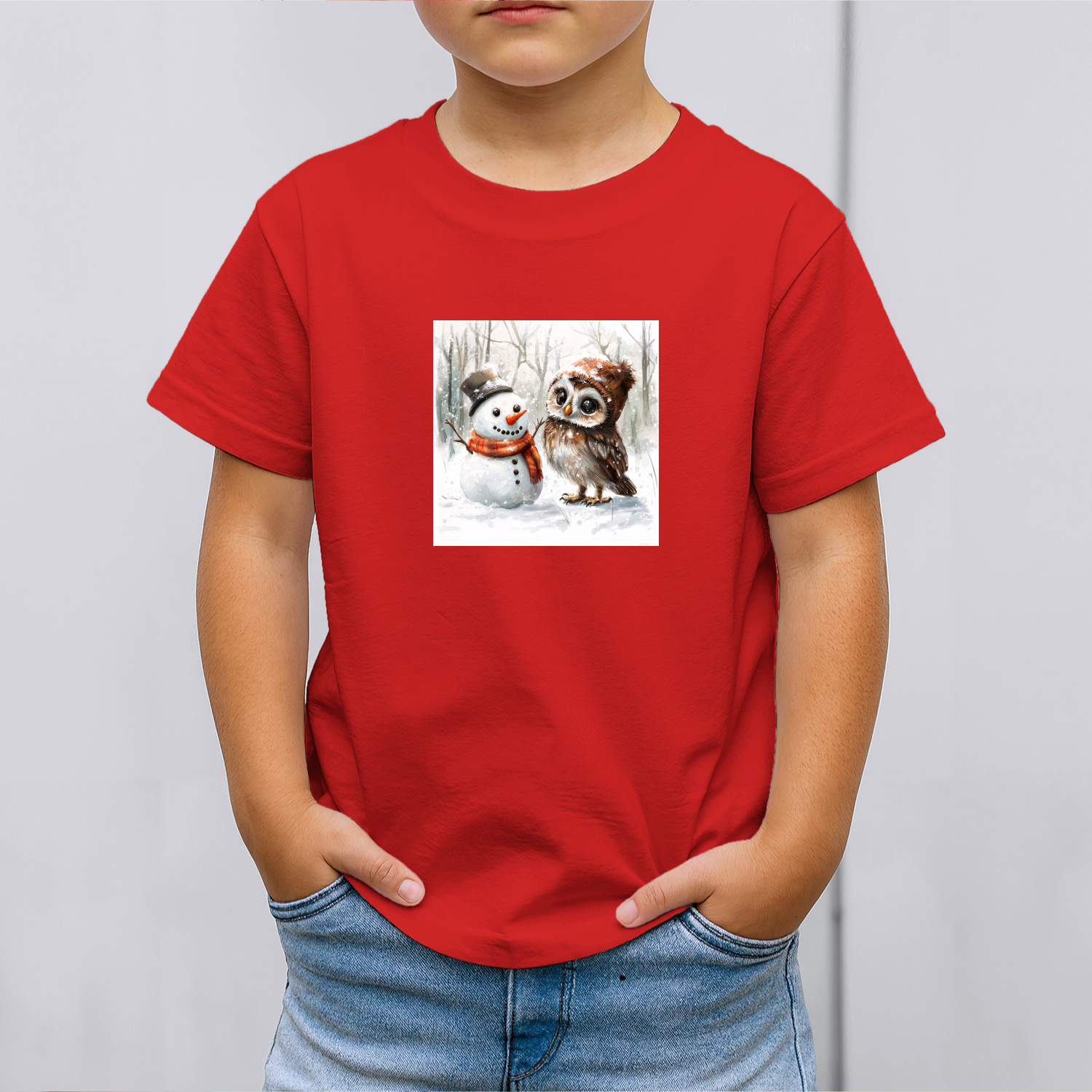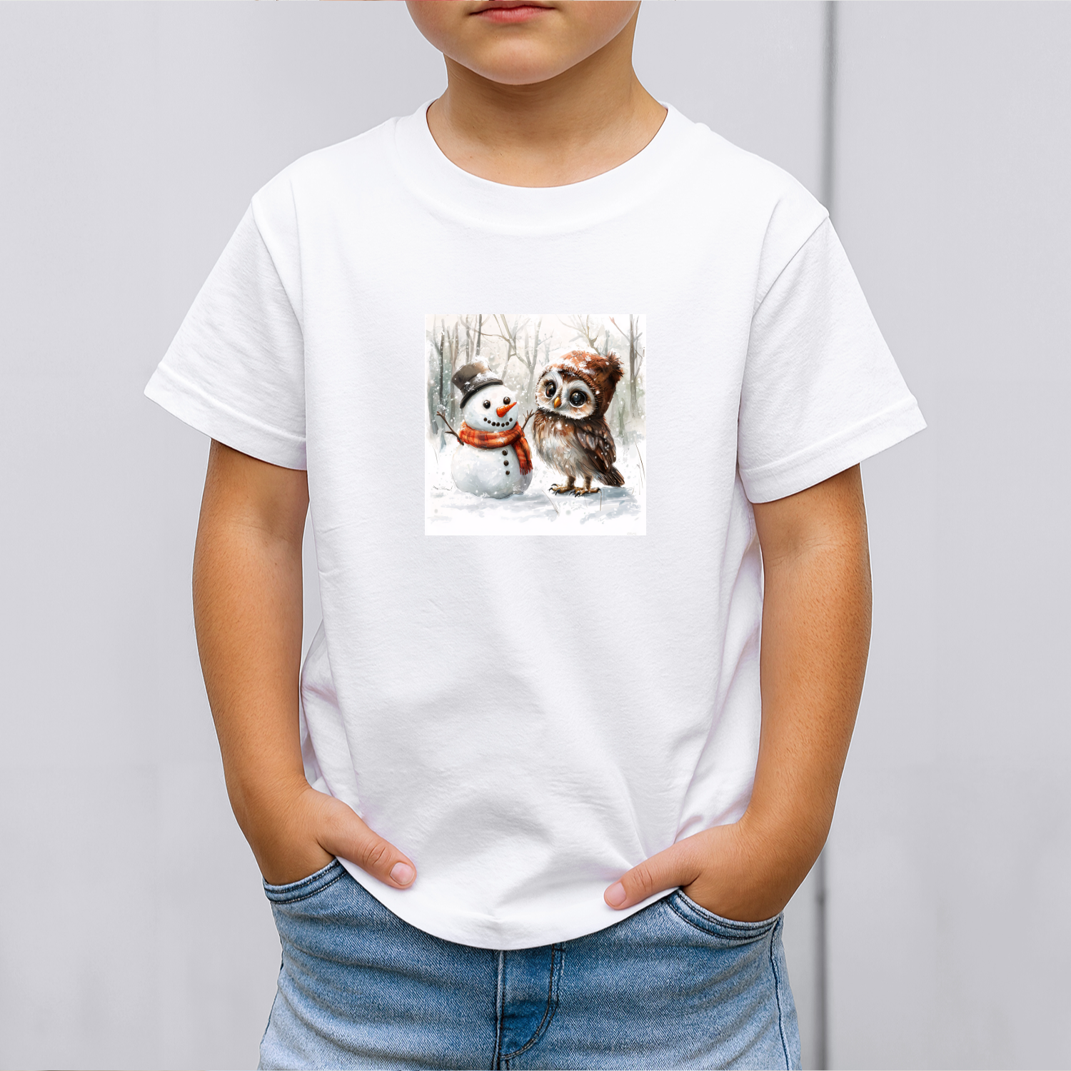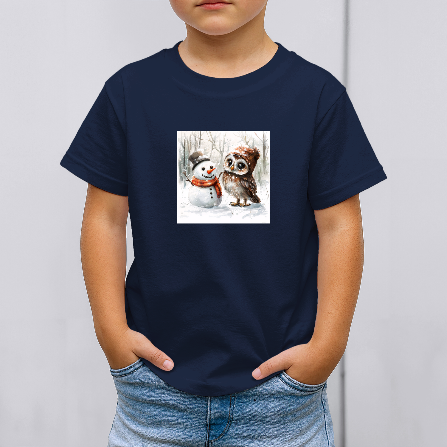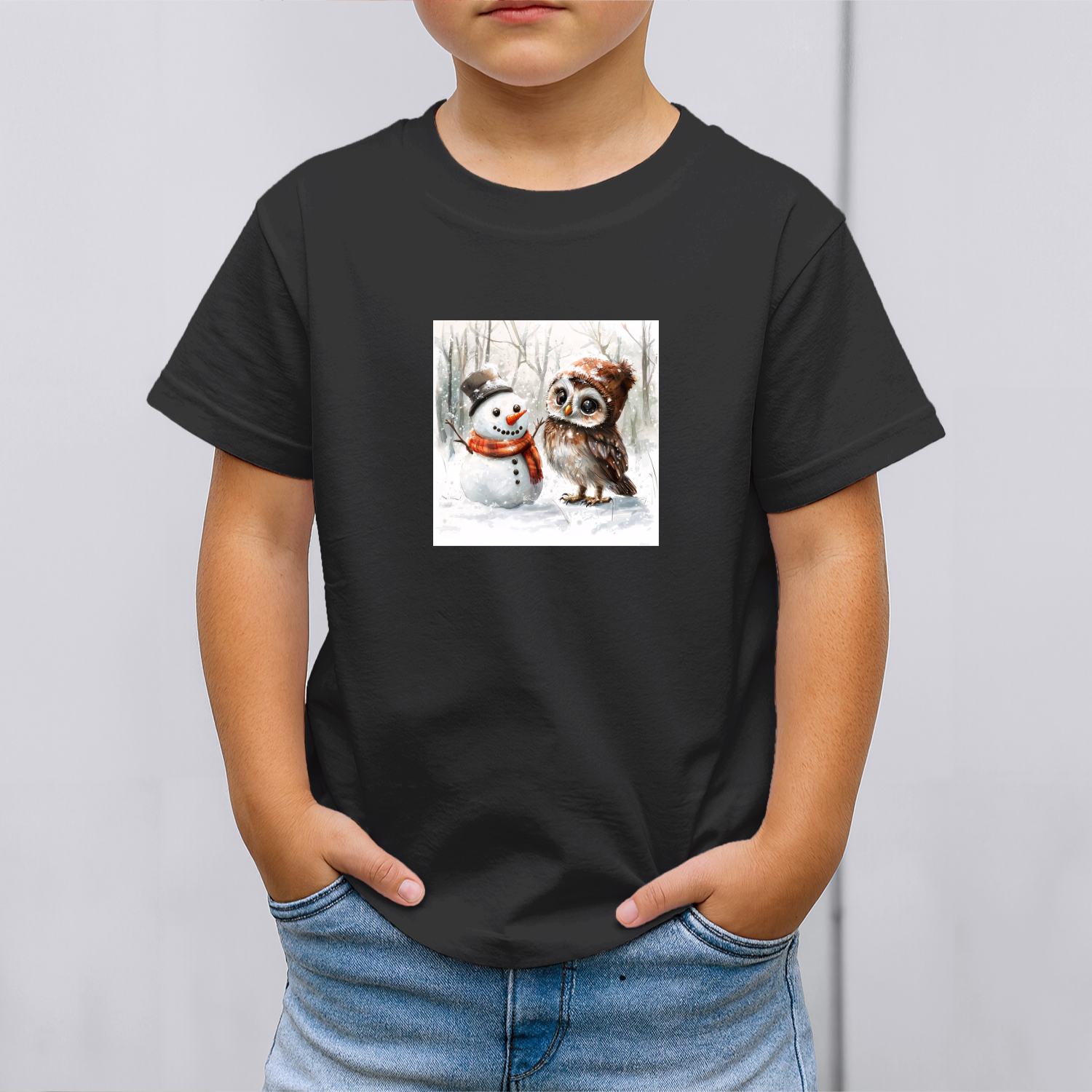 Būkite pirmas aprašęs “Vaikiški marškinėliai su spauda „Pelėdos ir sniego senio pasimatymas“”