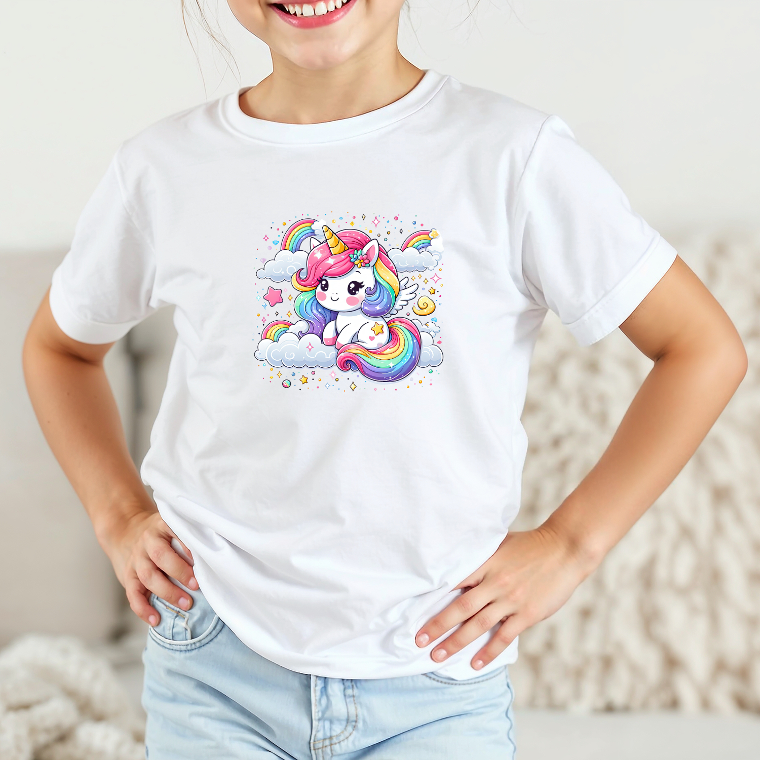 Būkite pirmas aprašęs “Vaikiški marškinėliai su spauda „Vaivorykštės sparnai“”