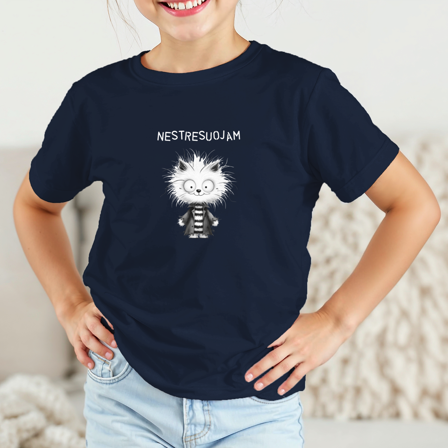 Būkite pirmas aprašęs “Vaikiški marškinėliai su spauda „Visko matęs katinas“”