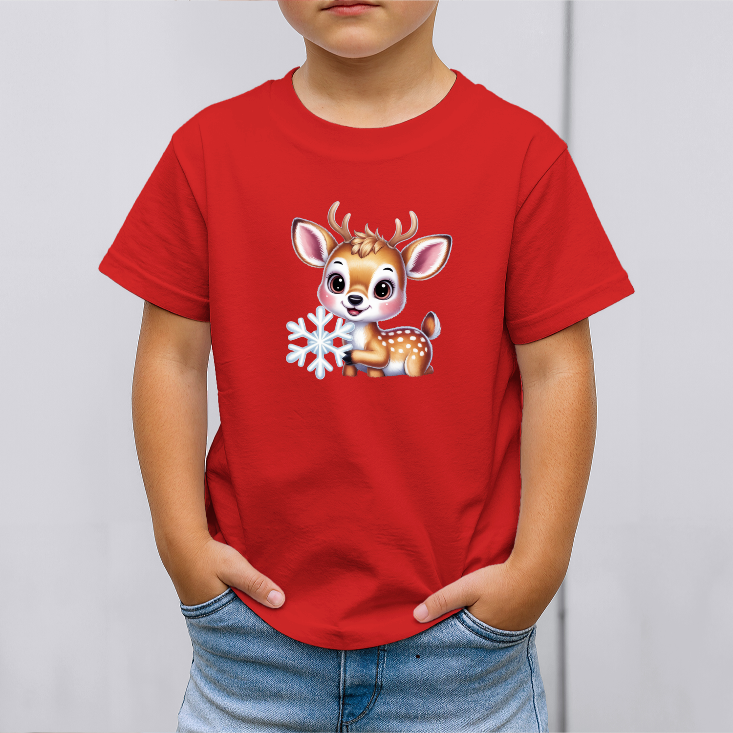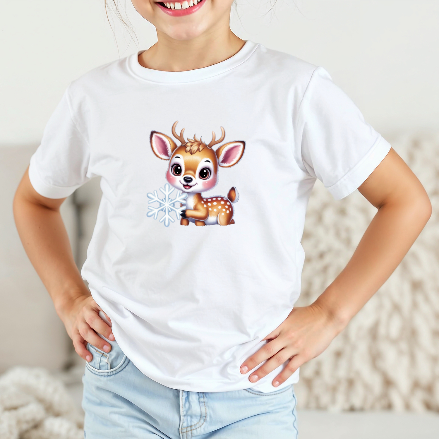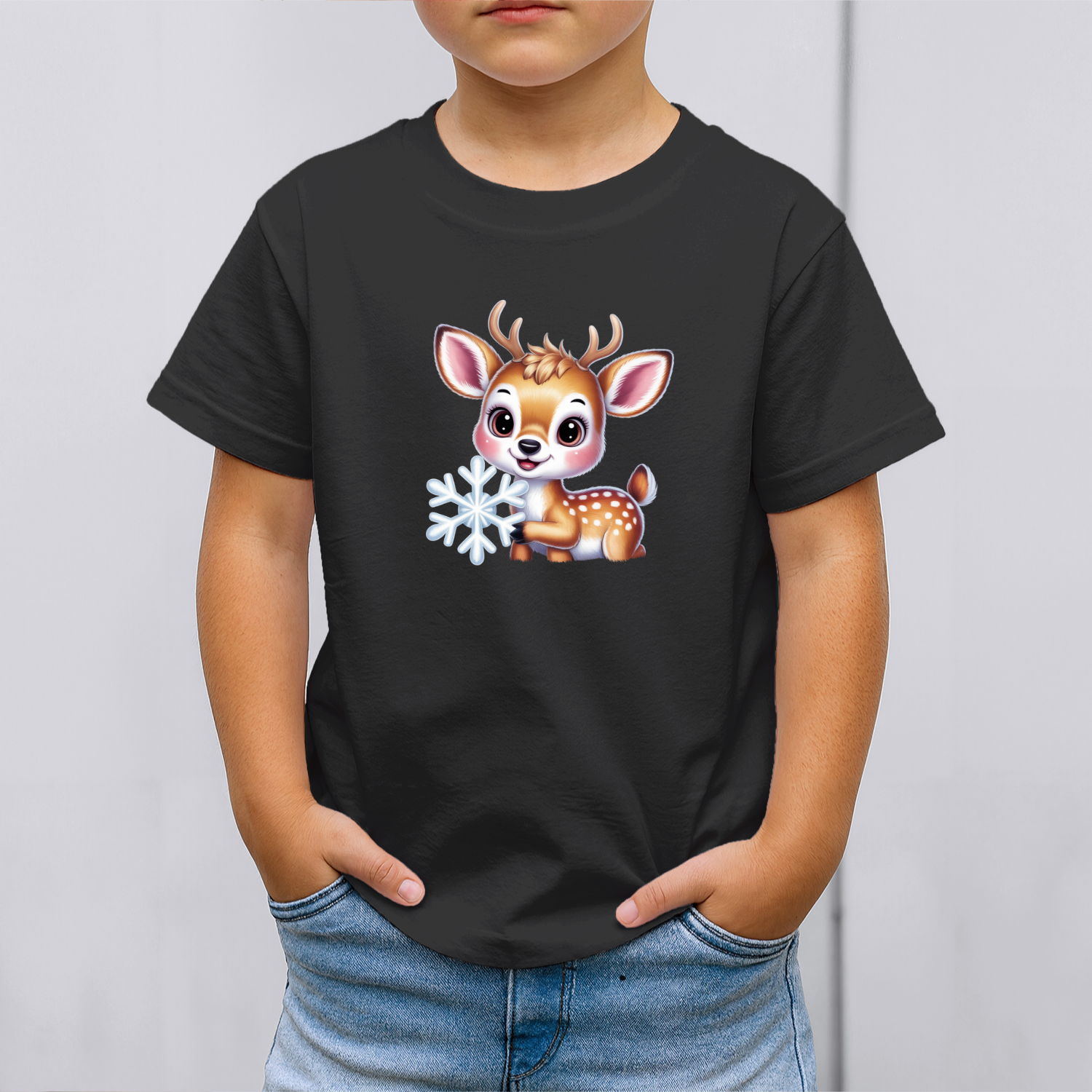Vaikiški marškinėliai su spauda „Žiemos džiaugsmo elniukas“