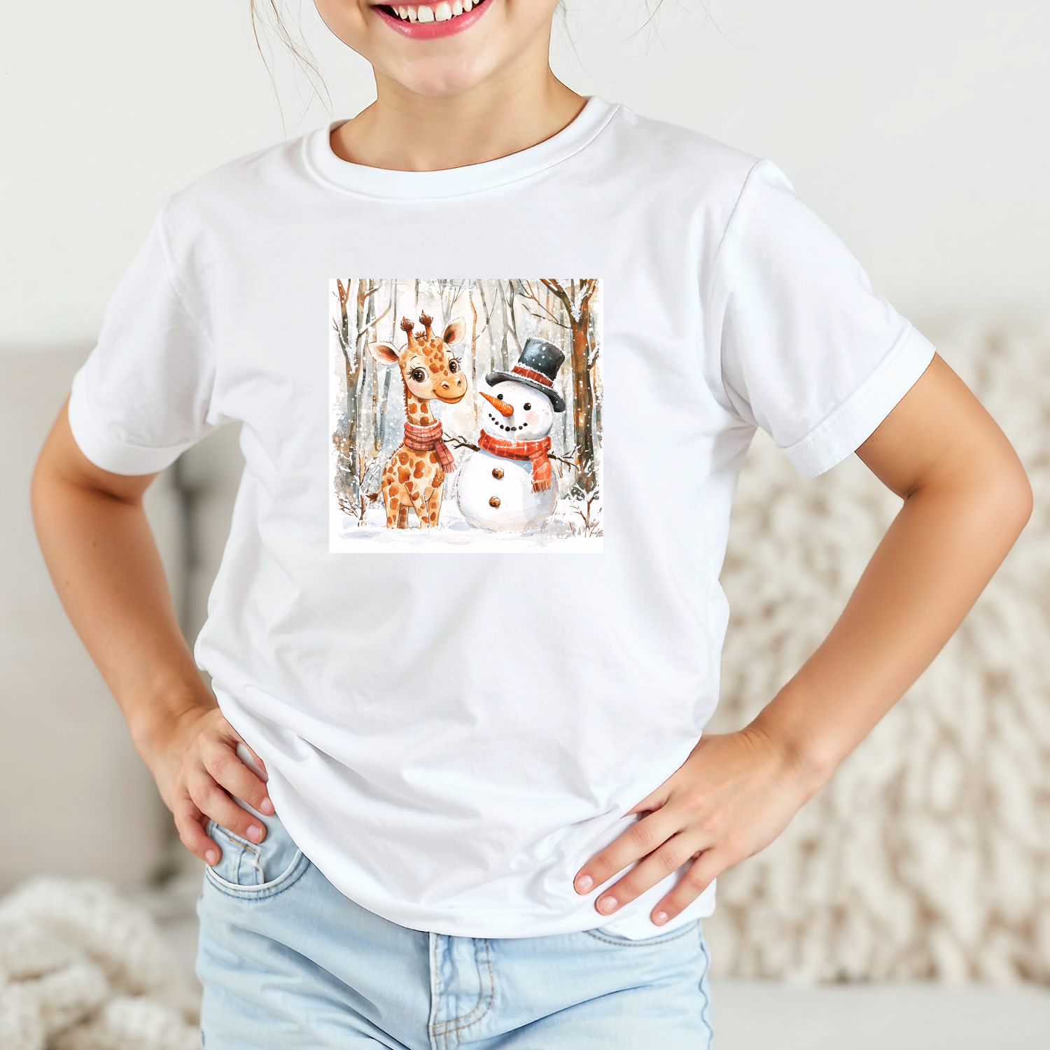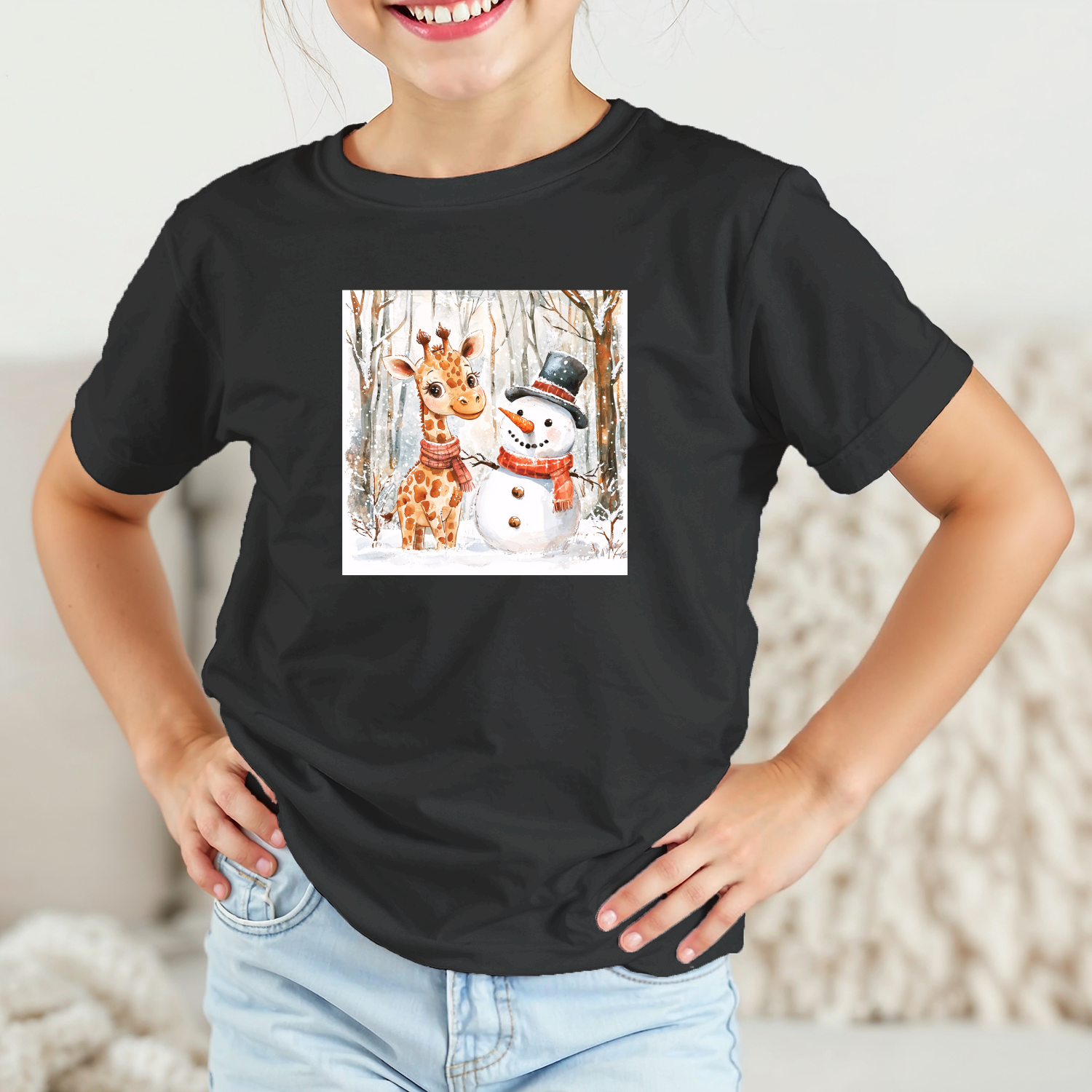 Būkite pirmas aprašęs “Vaikiški marškinėliai su spauda „Žirafos ir sniego senio draugystė“”